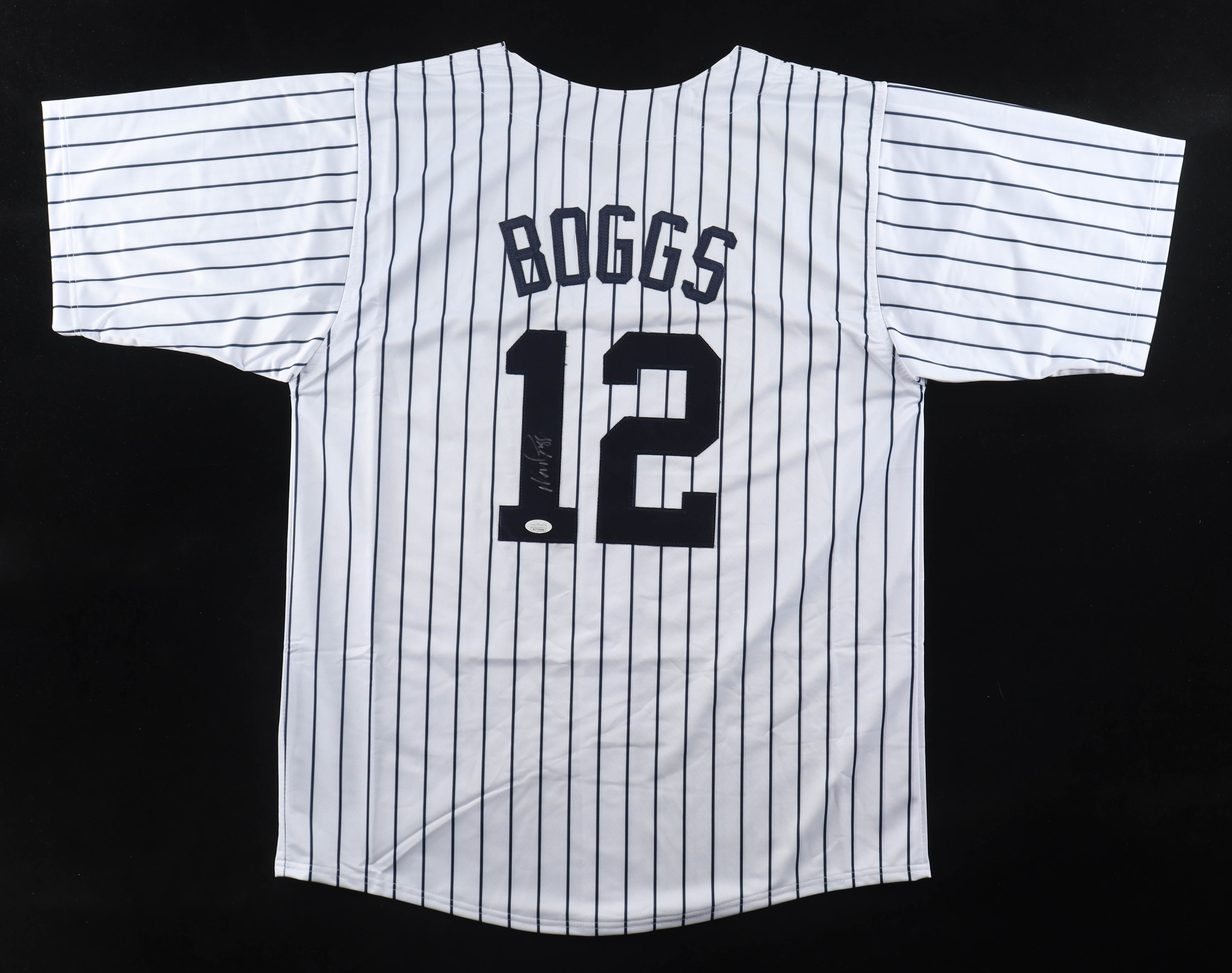 Custom jersey with everything sewn on, size XL. Hand-signed by Wade Boggs (New York Yankees, HOF).