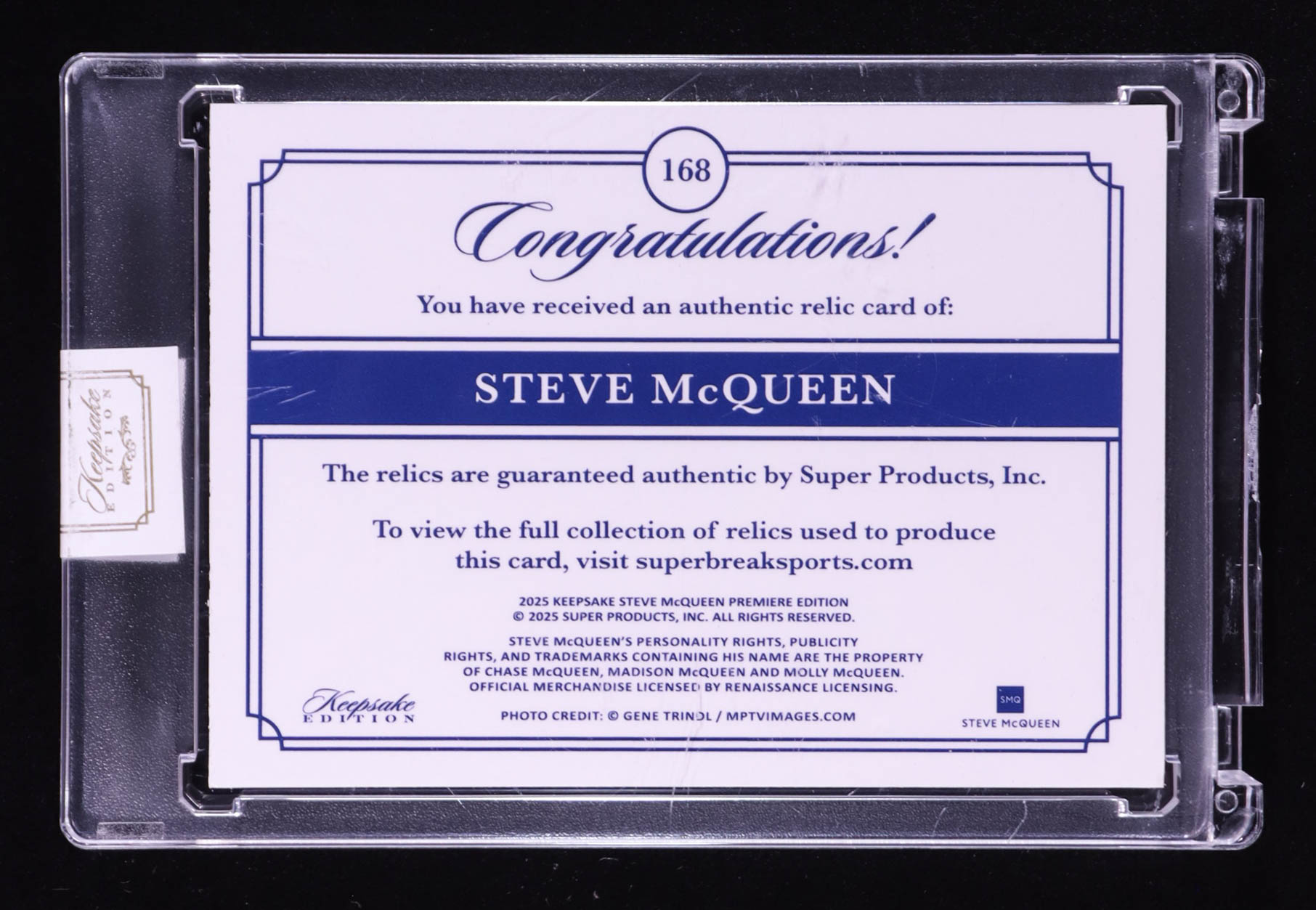 Steve McQueen 2025 Keepsake Edition Authentic Triple Relic #168 #06/50