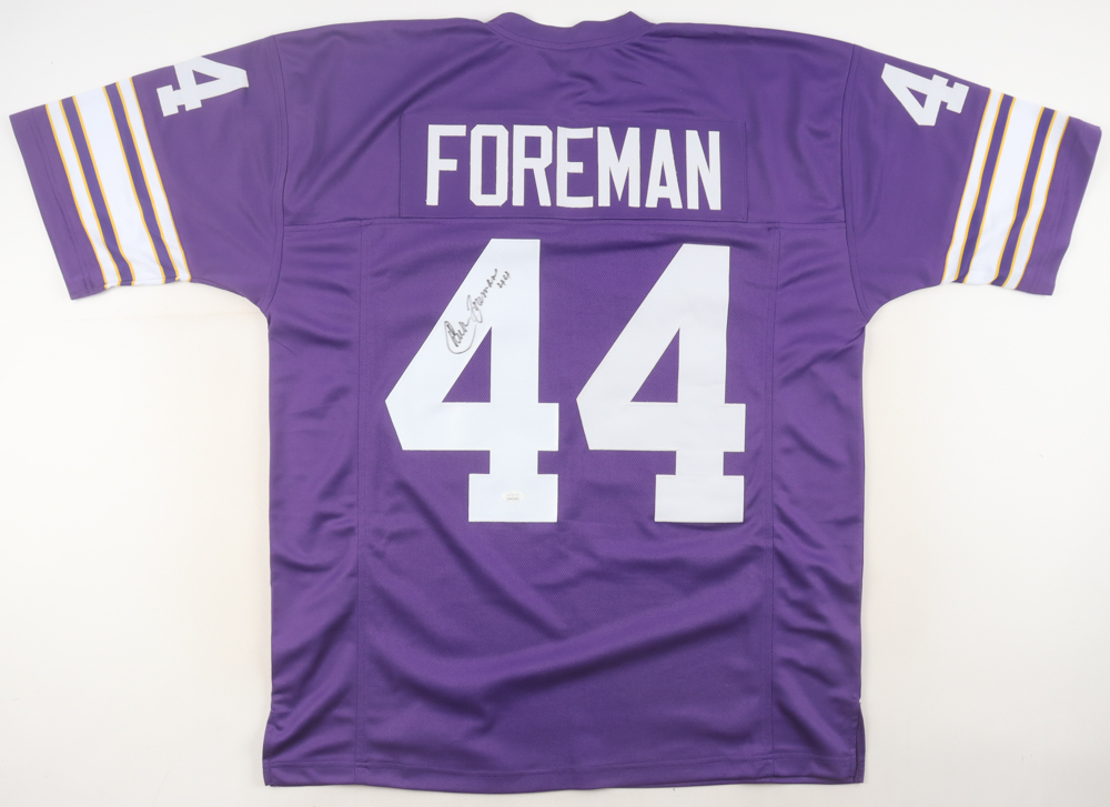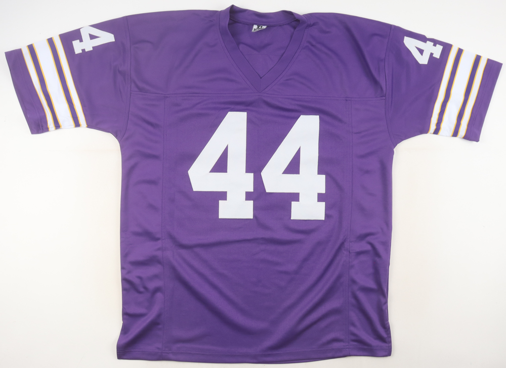 Custom jersey with everything sewn on, size XL. Hand-signed by Chuck Foreman.