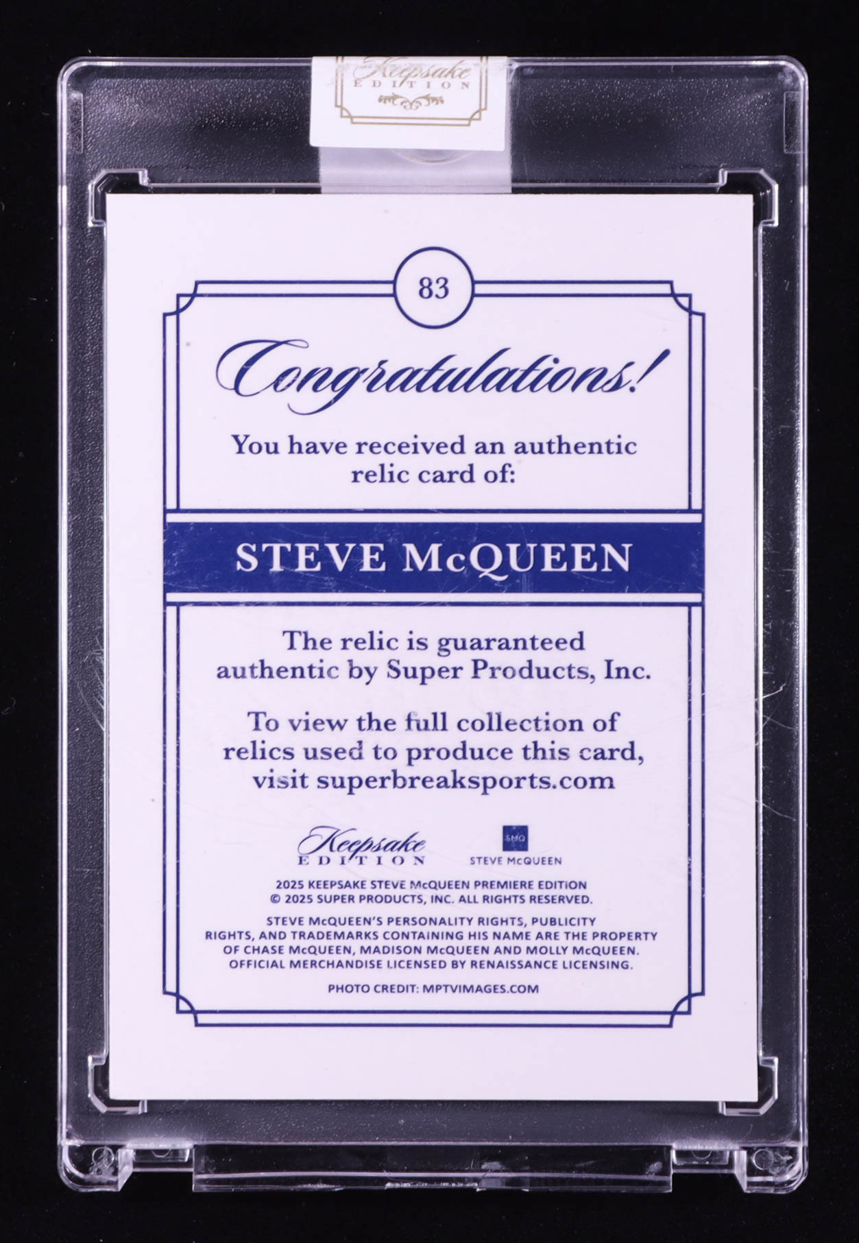 Steve McQueen 2025 Keepsake Edition Iconic Posters Authentic Relic #83 #19/50