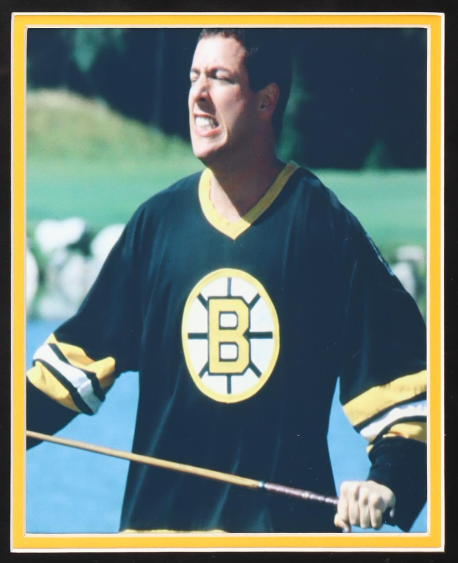 Custom frame measures approximately 32.5" x 39.5" in size and features a jersey that has been hand-signed by Adam Sandler (Bobby Boucher). Display also includes (2) 8" x 10" photos.