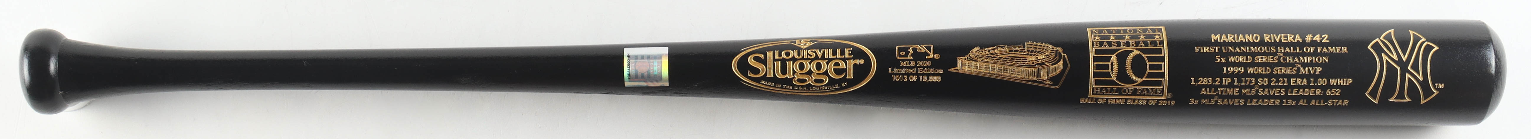 Louisville Slugger custom engraved baseball bat features a commemorative engraving of Mariano Rivera's hall of fame date and career stat. The bat is limited edition and has been hand-numbered #1,013/10,000. Please note, the baseball bat is unsigned.