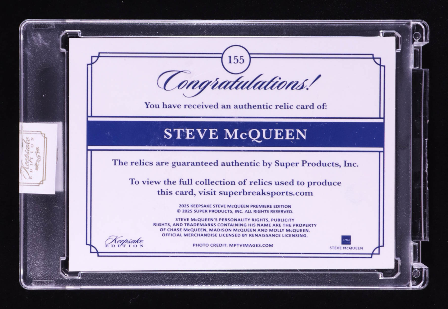 Steve McQueen 2025 Keepsake Edition Authentic Relics #155 #26/50