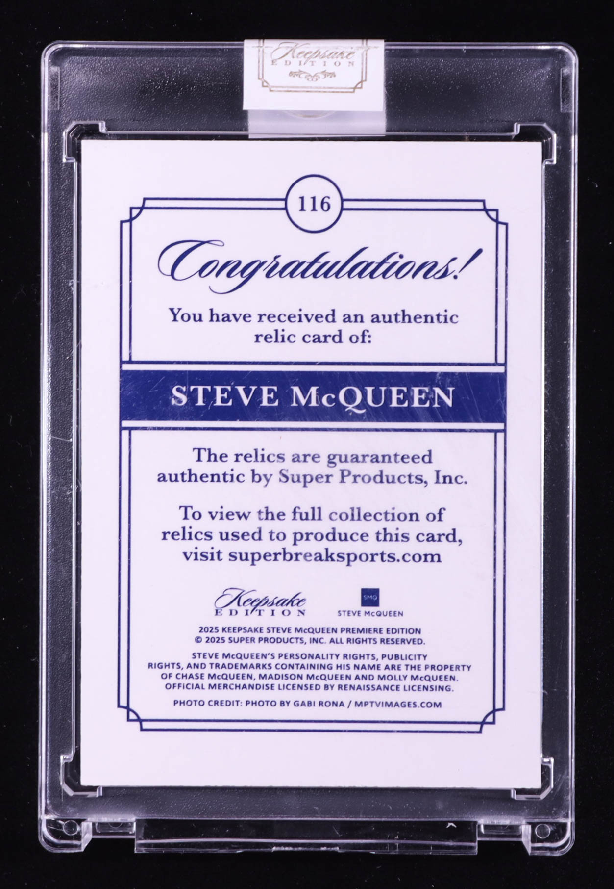 Steve McQueen 2025 Keepsake Edition Authentic Dual Relic #116 #12/50