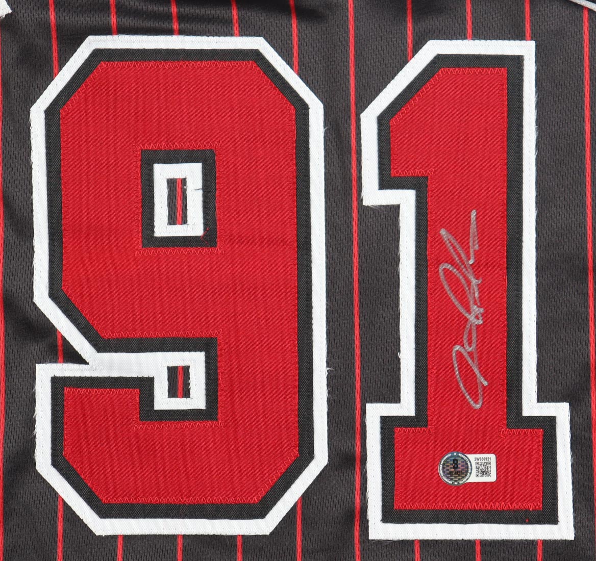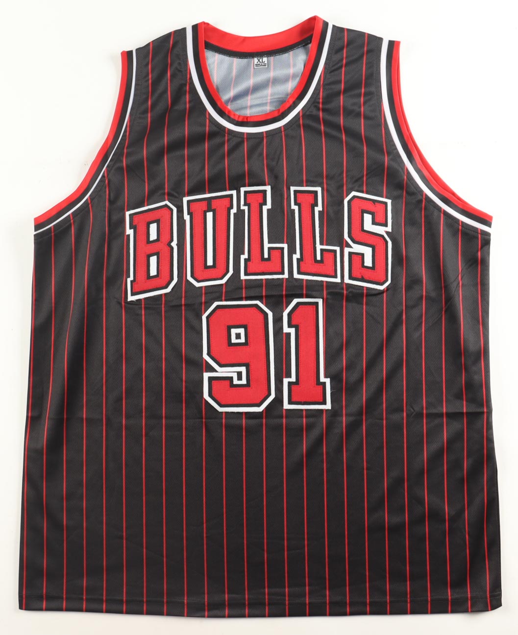 Custom jersey with everything sewn on, size XL. Has been hand-signed by Dennis Rodman (HOF).