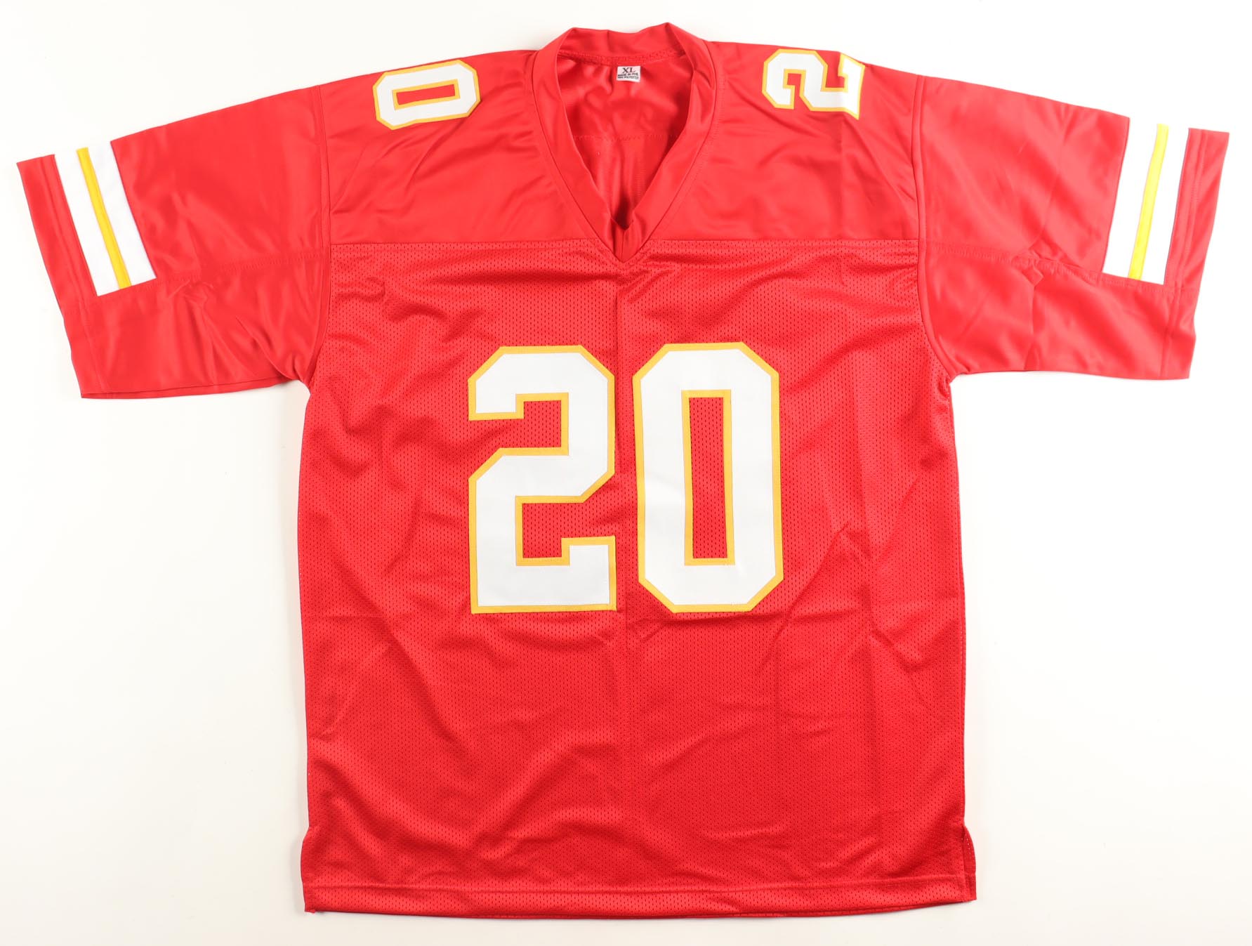 Custom jersey everything is sewn on, size XL. Hand-signed and inscribed by Patrick Mahomes Sr. Please note, the signature ink has bled.