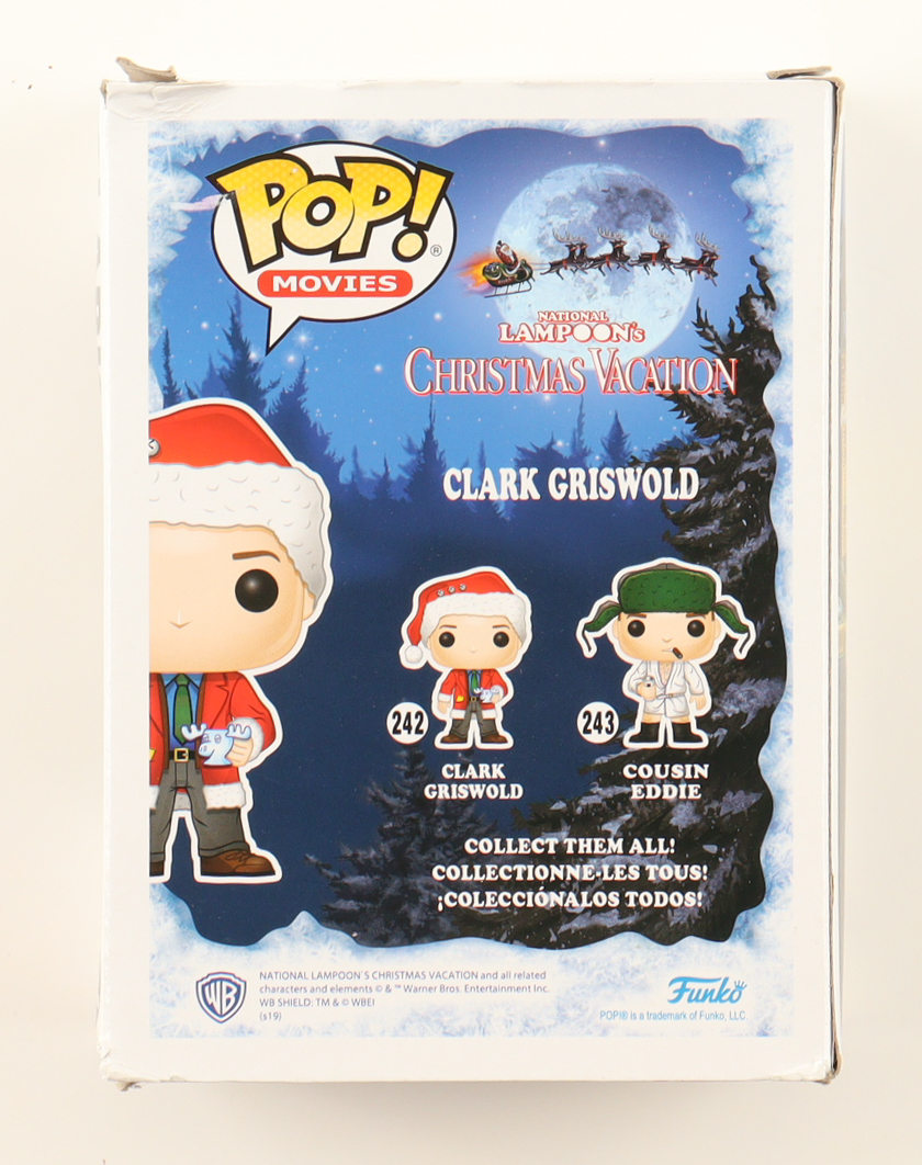 Funko Pop! vinyl figure measures approximately 4" in height and has been hand-signed on the packaging by Chevy Chase (Clark W. Griswold).