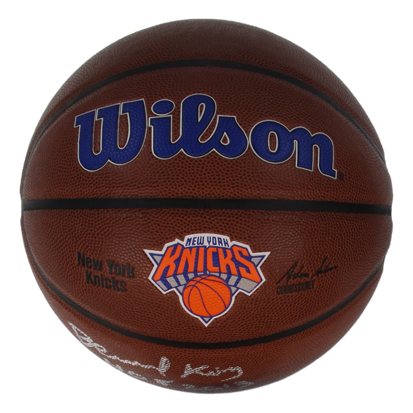 Wilson New York Knicks logo NBA basketball has been hand-signed and inscribed by Bernard King (HOF).