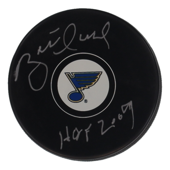 Brett Hull Signed Blues Logo Hockey Puck Inscribed "HOF 2009" (Schwartz)