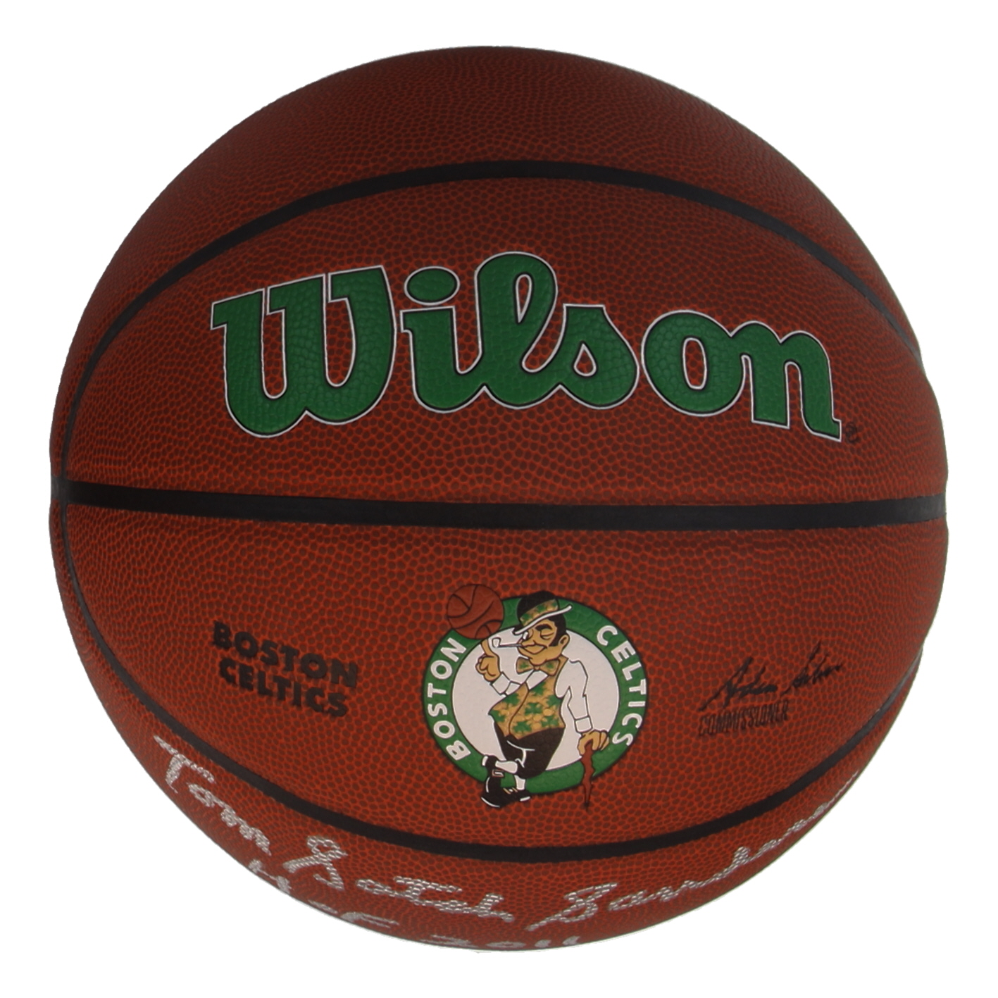 Wilson NBA Boston Celtics logo basketball has been hand-signed and inscribed by Tom Sanders (HOF).
