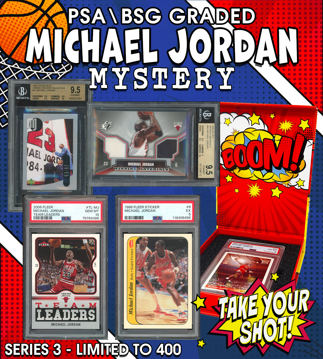 NEW PRISTINE EXCLUSIVE! All PSA/BGS Graded Michael Jordan BOOM BOX, Series 3 Mystery Box! Limited to only 400 packs!