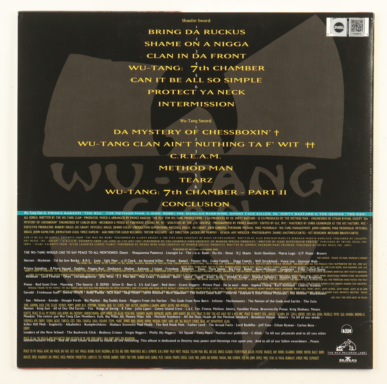 Vinyl record album has been hand-signed by RZA, GZA, Method Man, U-God, Ghostface Killa, Raekwon, and Masta Killa.