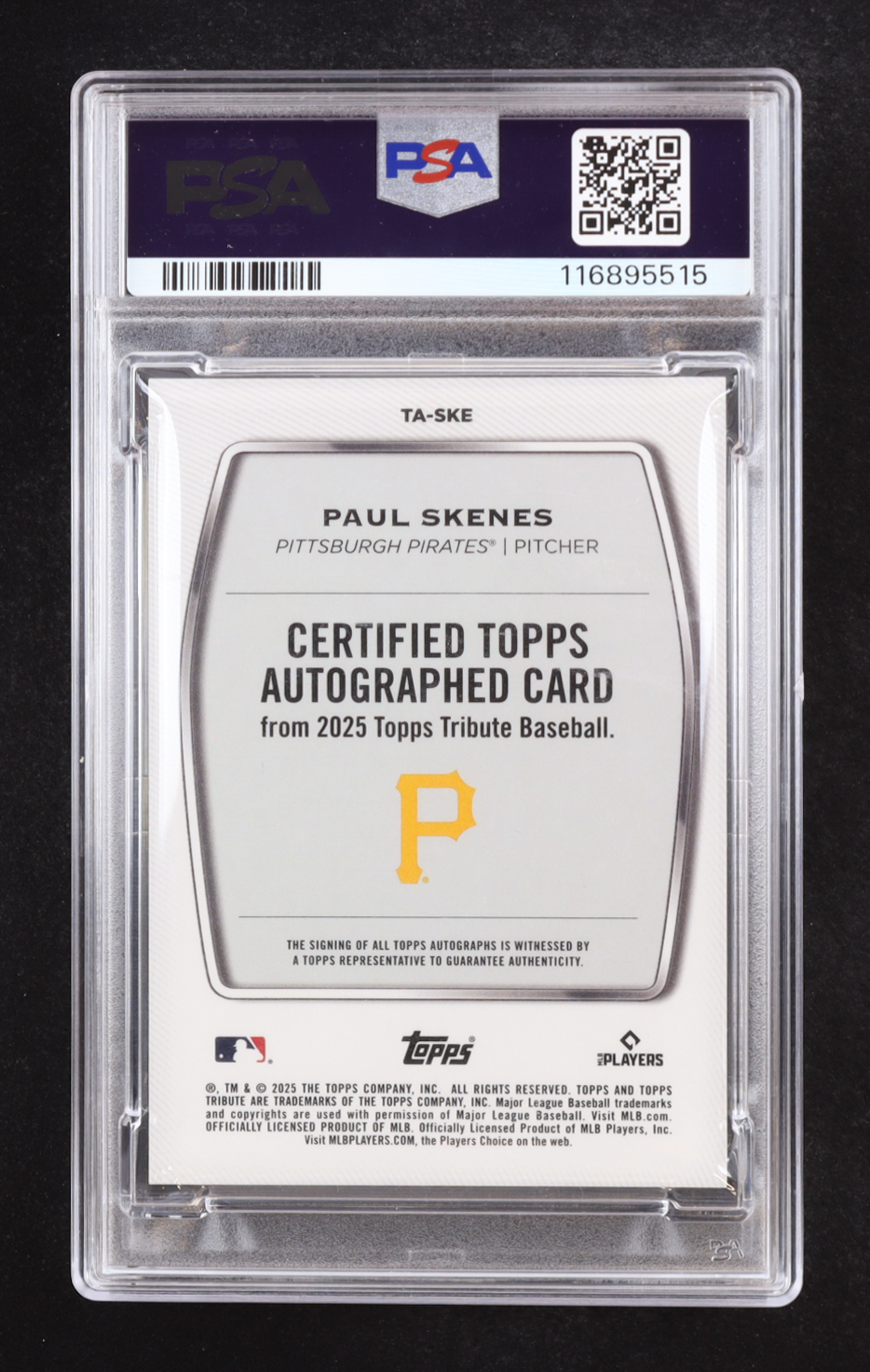 Paul Skenes 2025 Topps Tribute Autographs #TASKE #070/199 (PSA 8 | Autograph Grade 9)