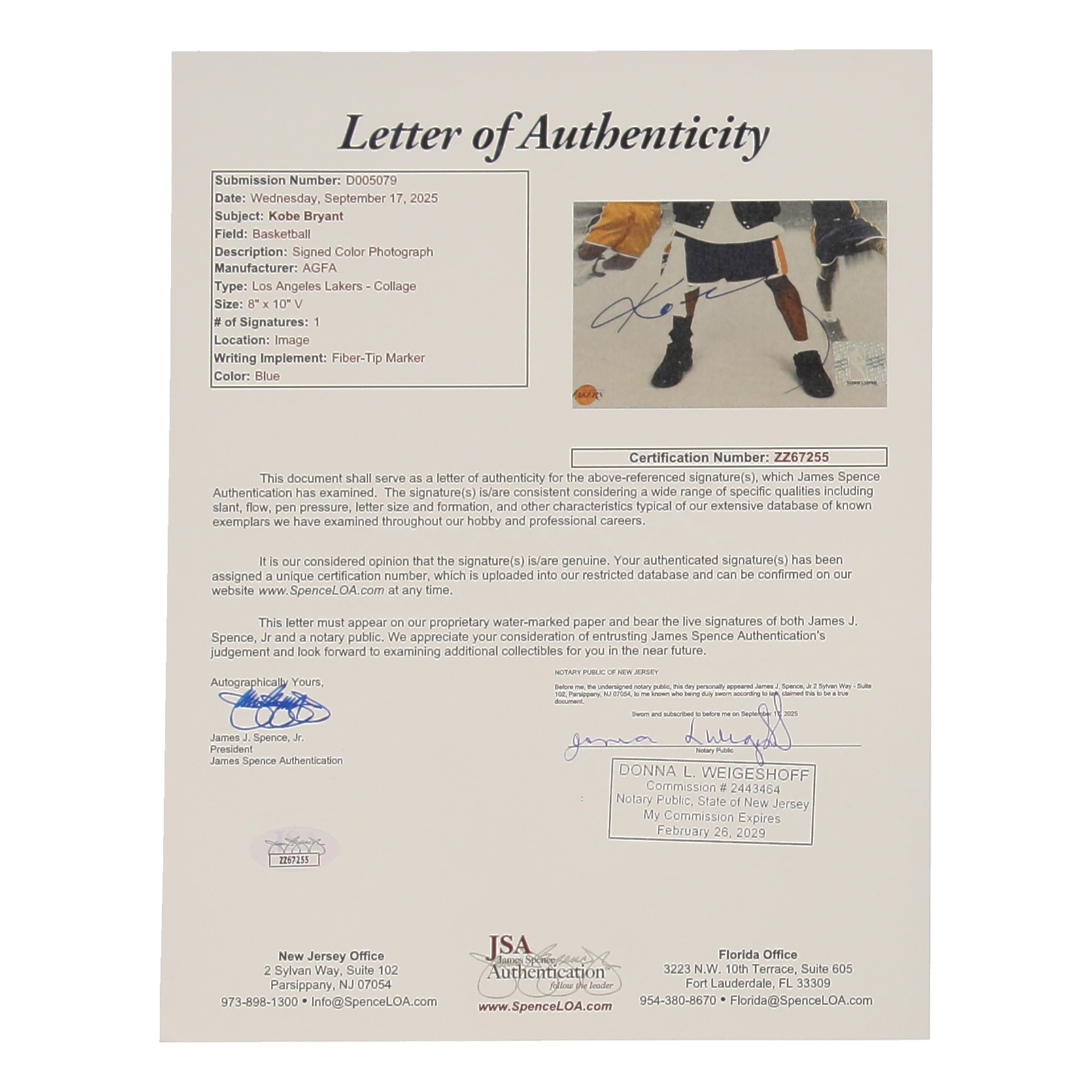 The autograph(s) includes an official James Spence Authentication (JSA) hologram and matching LOA for authenticity purposes.