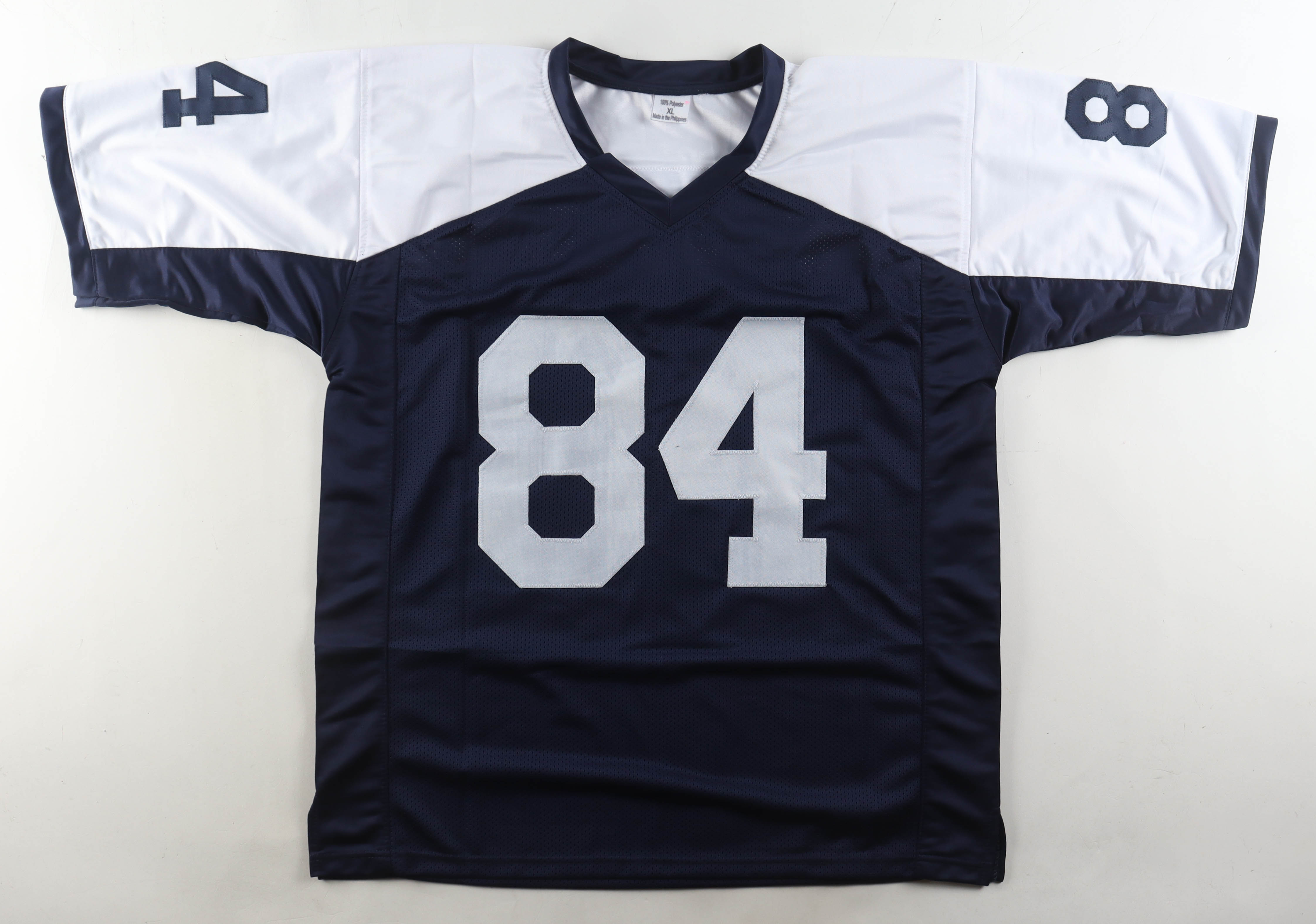 Custom jersey with everything sewn on, size XL. Hand-signed by Jay Novacek (Dallas Cowboys).