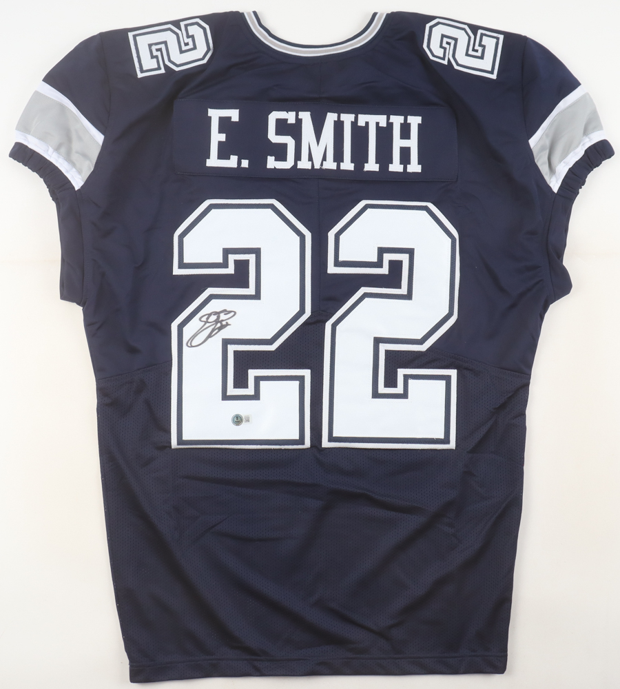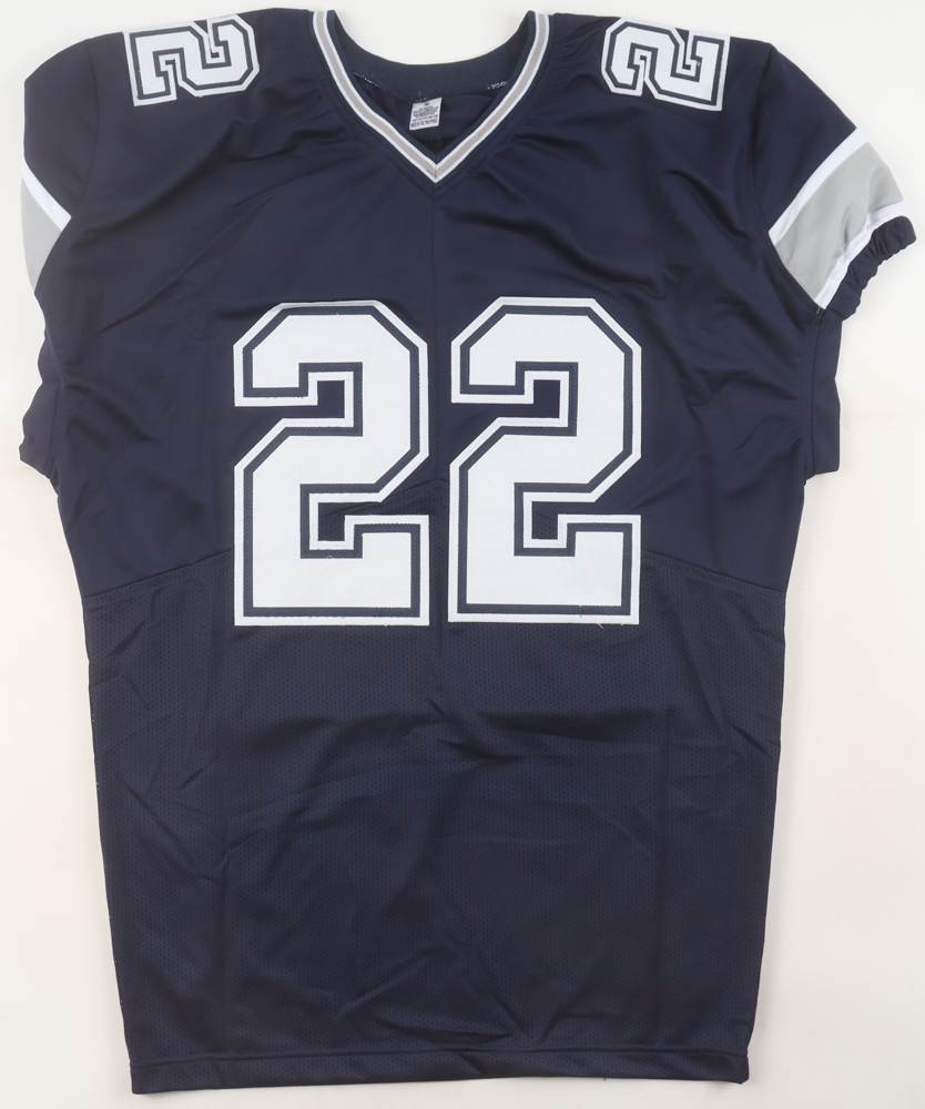Custom jersey with everything sewn on, size XL. Hand-signed by Emmitt Smith (HOF).