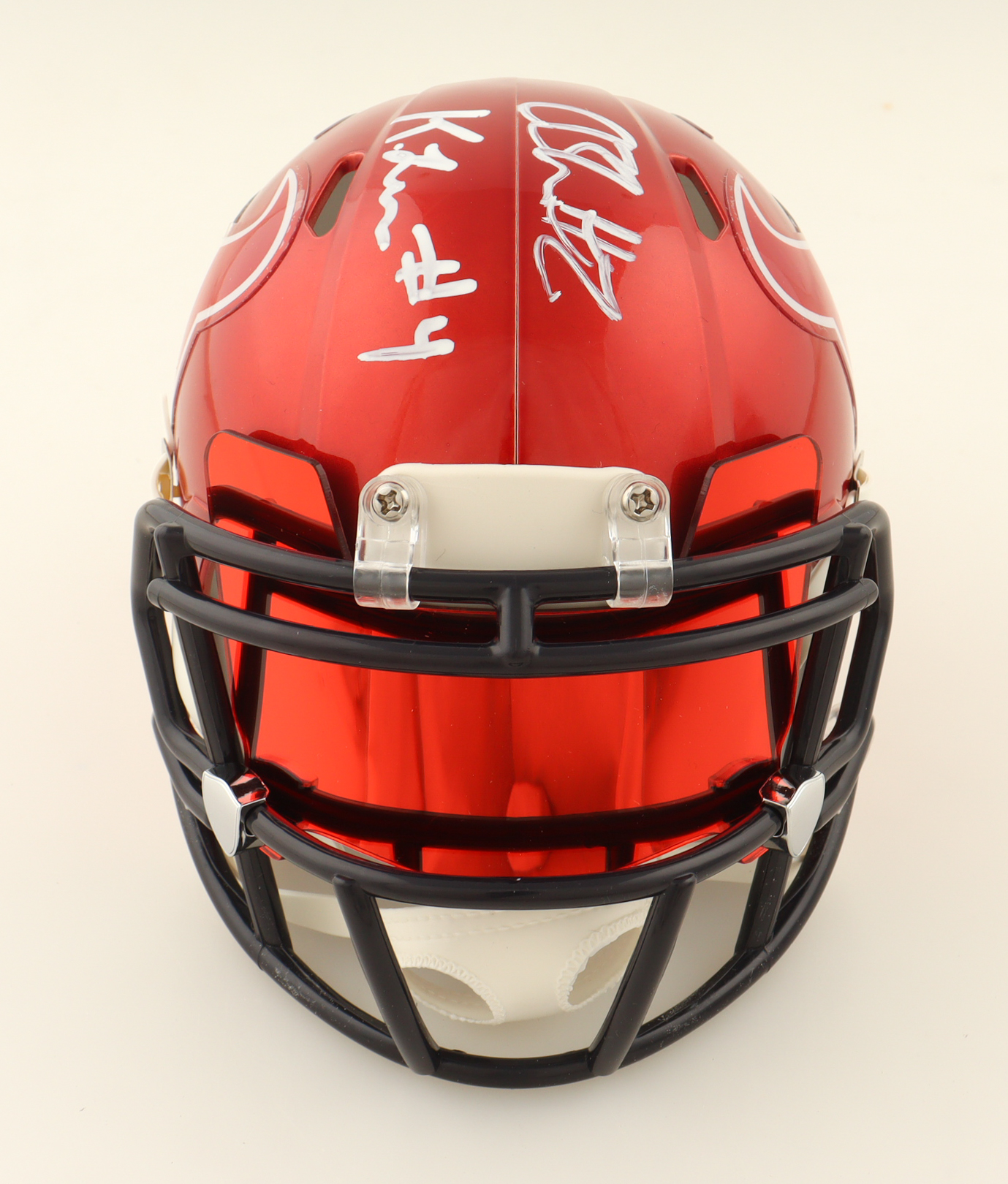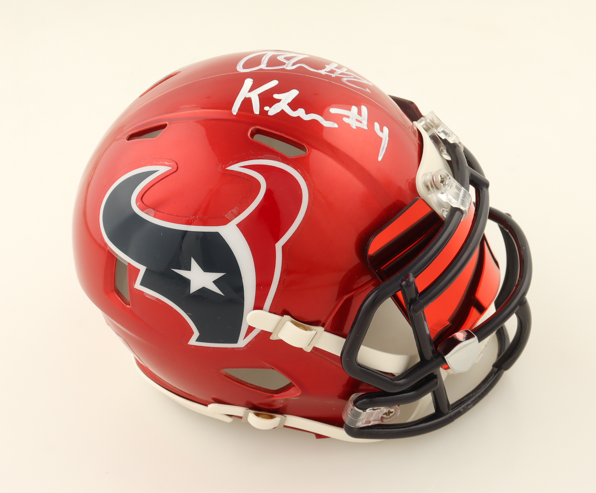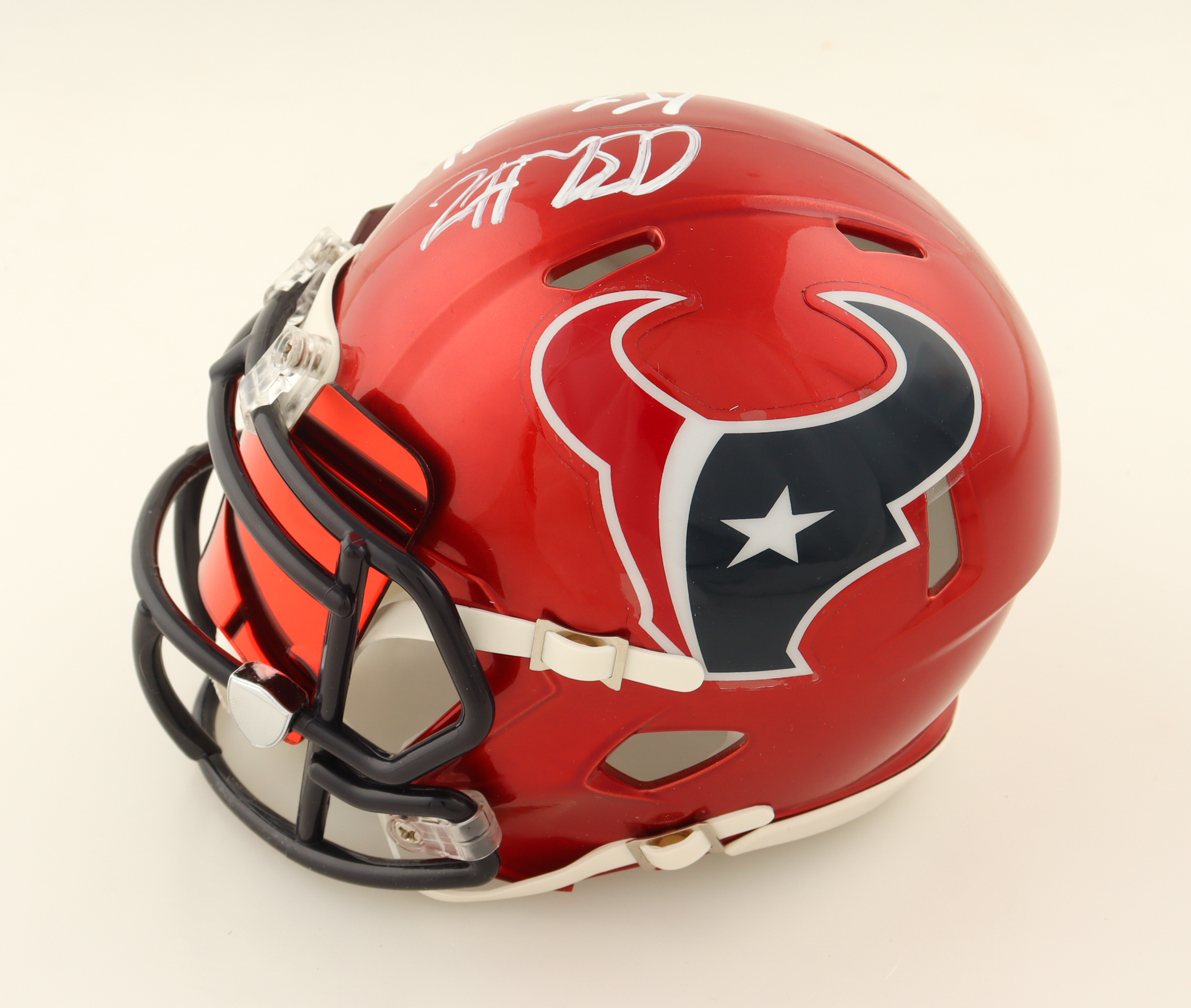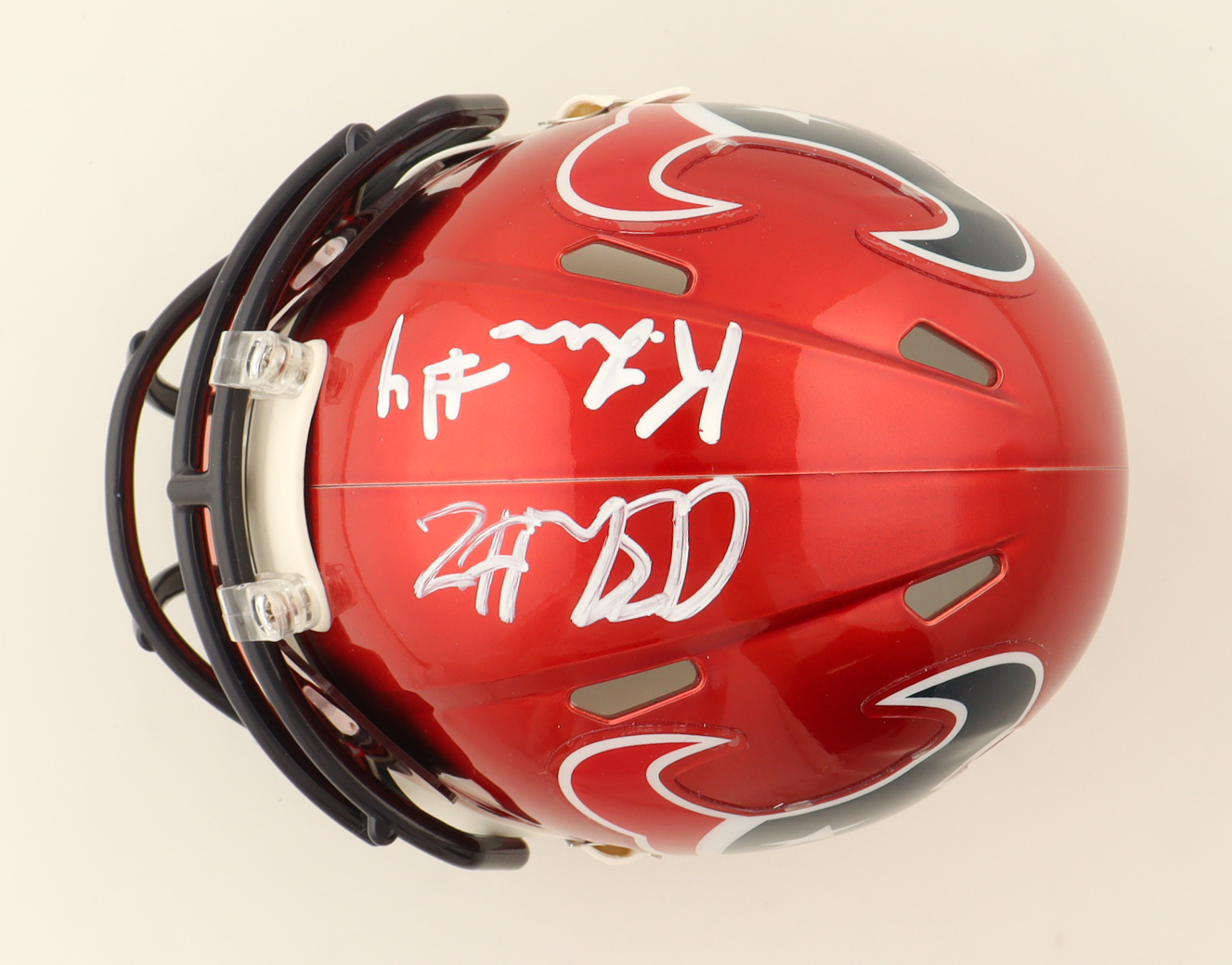 Riddell Houston Texans Flash Alternate Speed mini helmet with custom visor. Hand-signed by Kamari Lassiter and Calen Bullock.