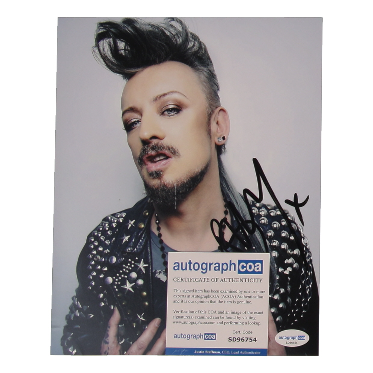 Photo measures 8" x 10" in size and has been hand-signed and inscribed by Boy George.