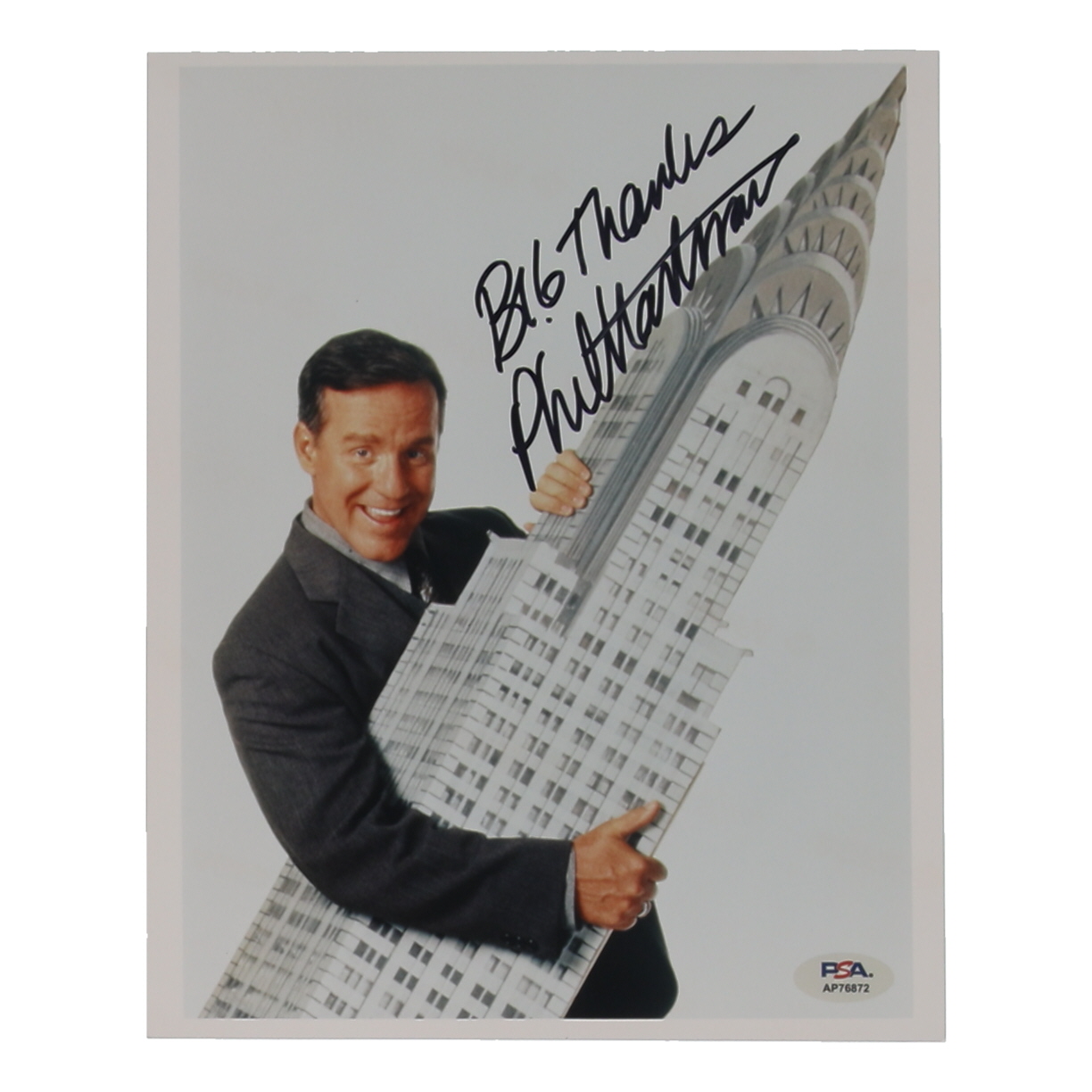 Photo measures approximately 8" x 10" and has been hand-signed by Phil Hartman (D. 1998).