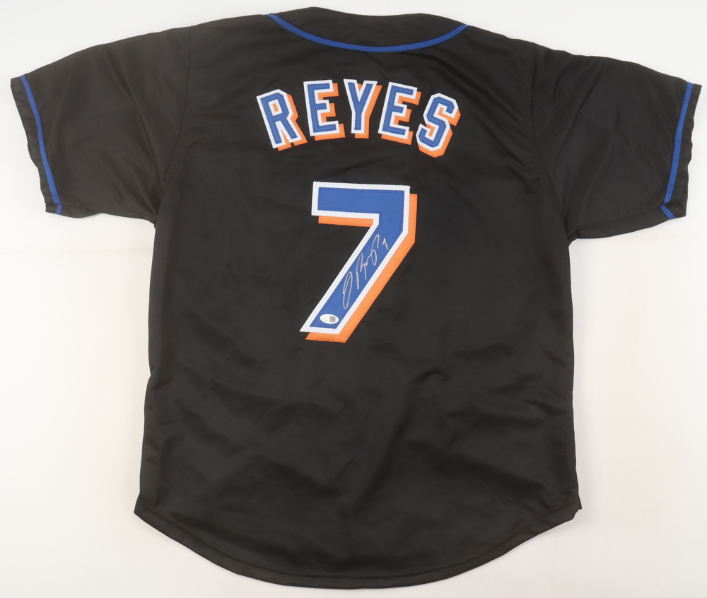 Custom jersey with everything sewn on, size XL. Hand-signed by Jose Reyes (New York Mets).