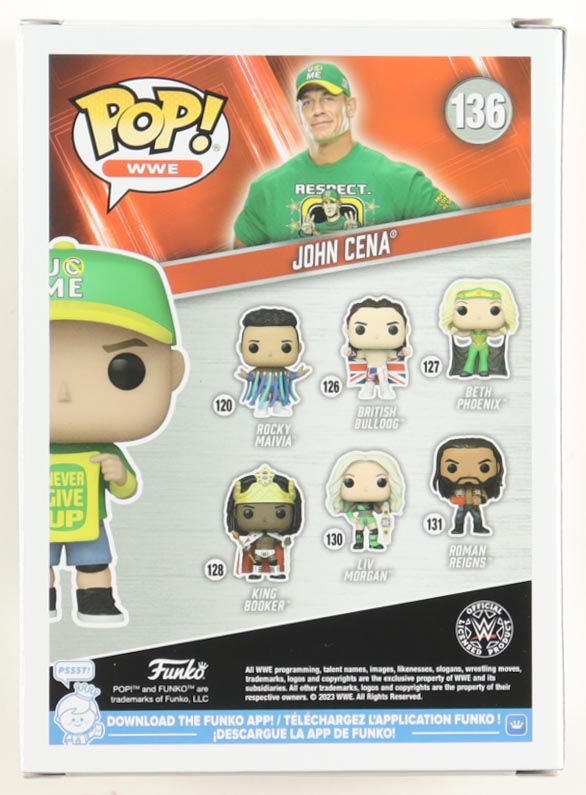 Vinyl figure measures approximately 4" tall and has been hand-signed on the packaging by John Cena. Please note, the packaging window has been swapped.