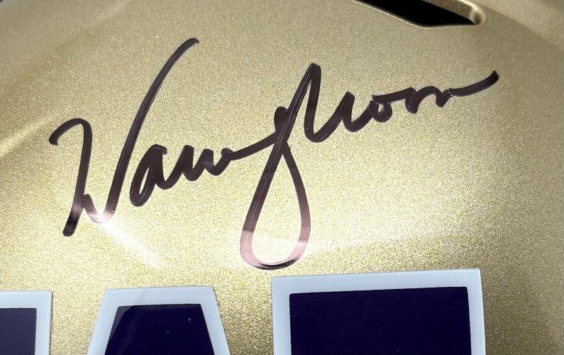 Riddell Washington Huskies full-size speed replica helmet has been hand-signed by Warren Moon (HOF).