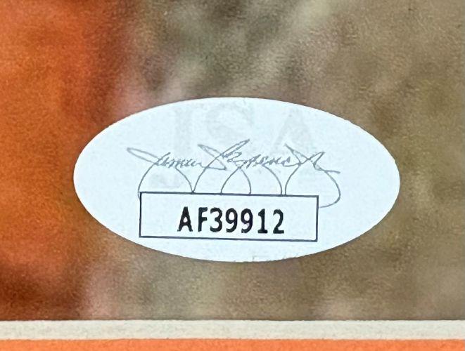 The autograph includes an official Beckett Authentication Services serially numbered hologram as well as an official James Spence Authentication (JSA) hologram for authenticity purposes. The signing of this item was witnessed by Beckett and JSA.