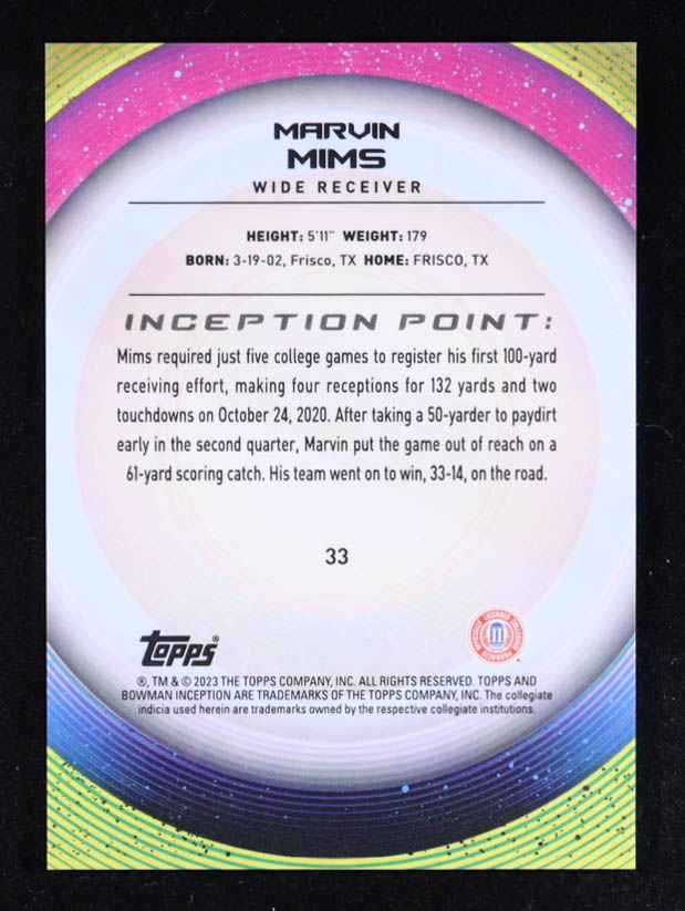 Marvin Mims 2022-23 Bowman Inception University #33 RC