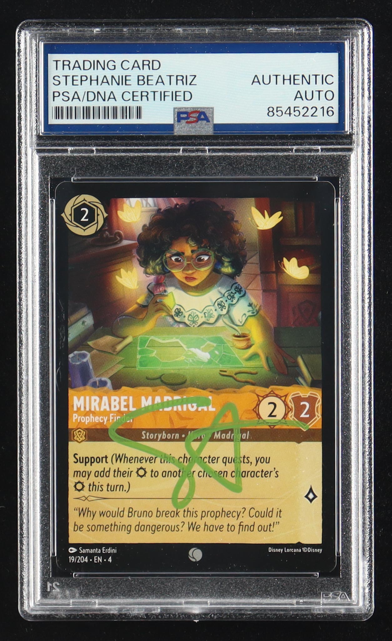 Stephanie Beatriz Signed Mirabel Madrigal 2024 Disney Lorcana Prophecy Finder Ursula's Return 19/204 (PSA)