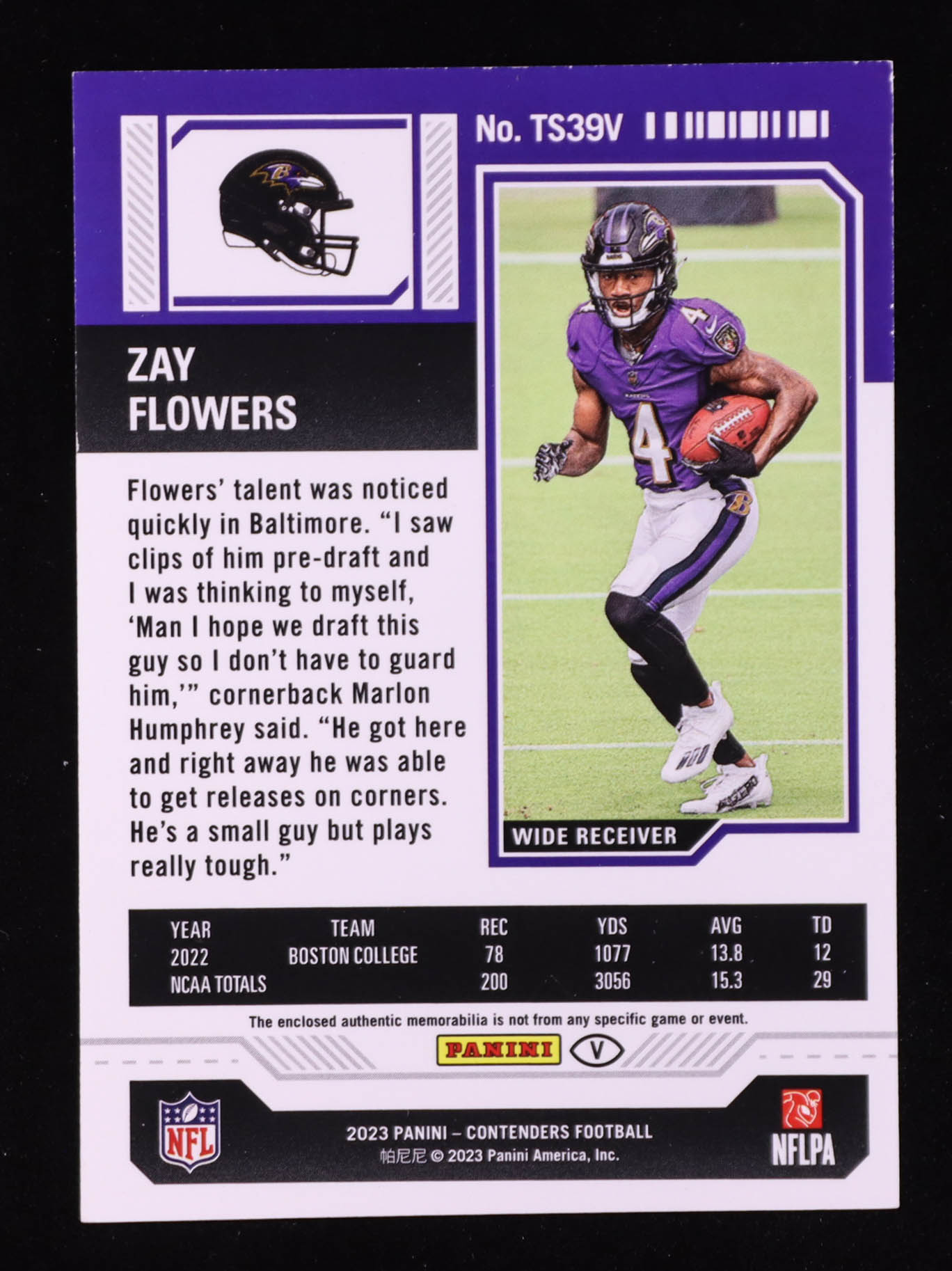 Zay Flowers 2023 Panini Contenders Rookie Ticket Swatches Variations #39 RC