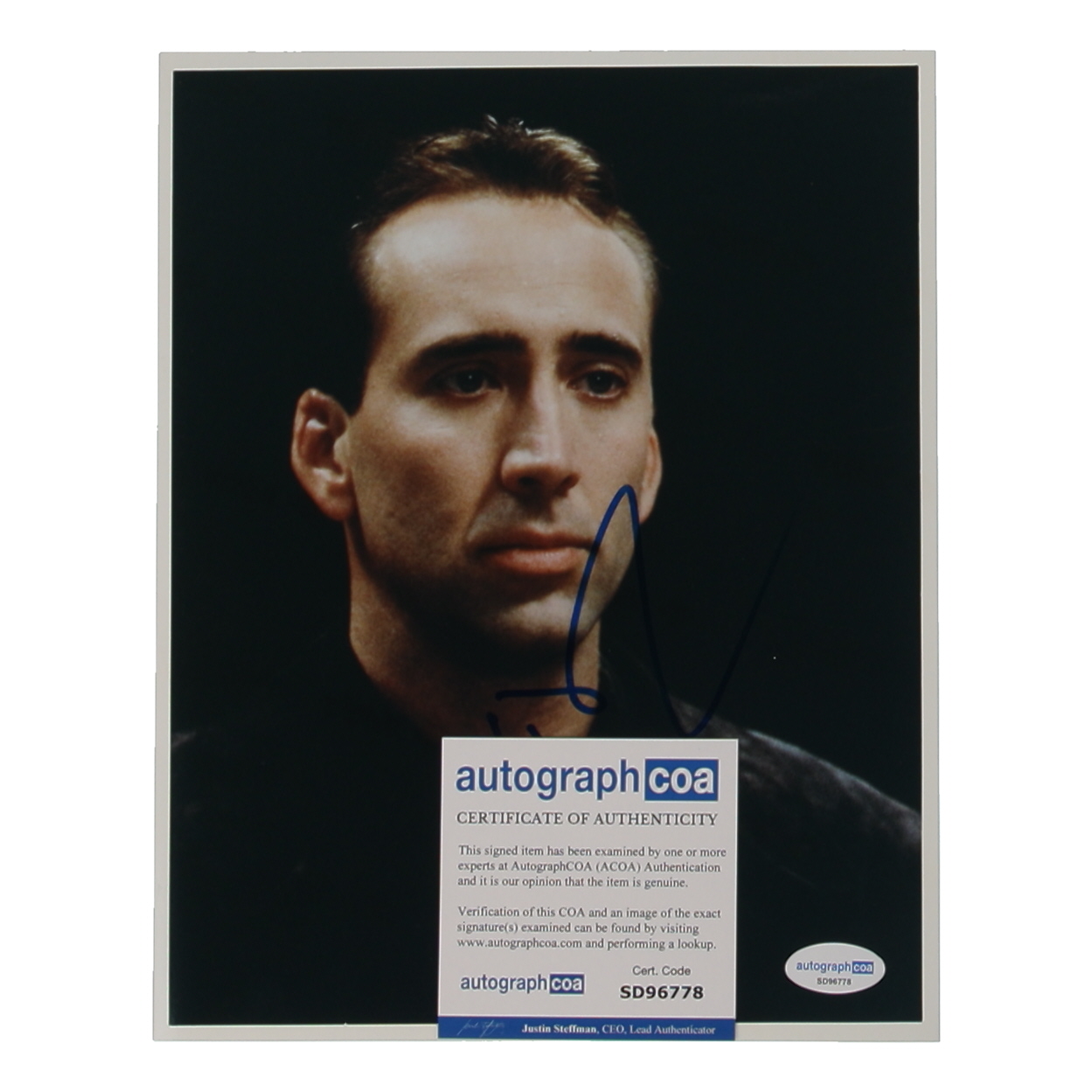 Photo measures 8" x 10" in size. Hand-signed by Nicolas Cage.