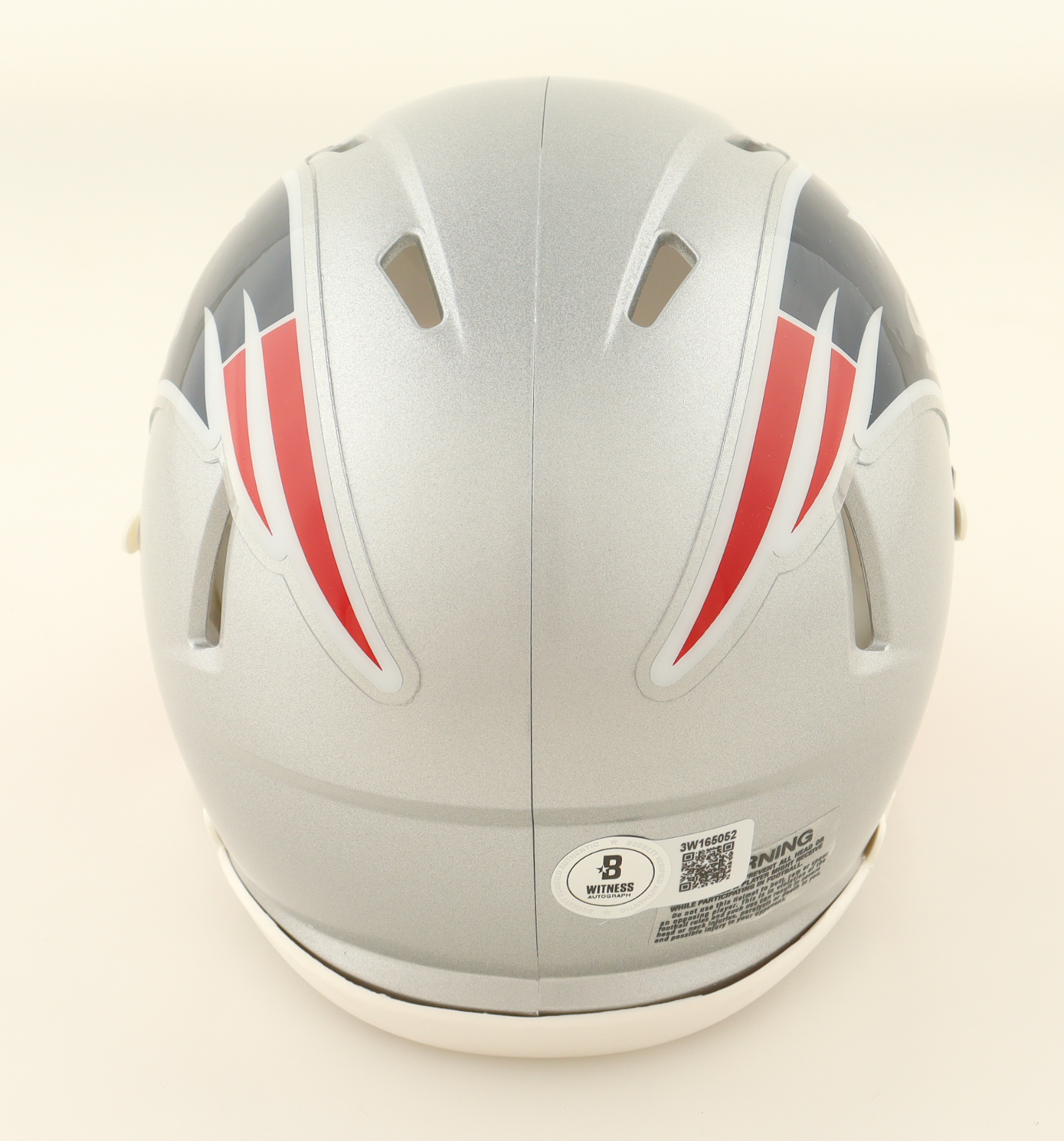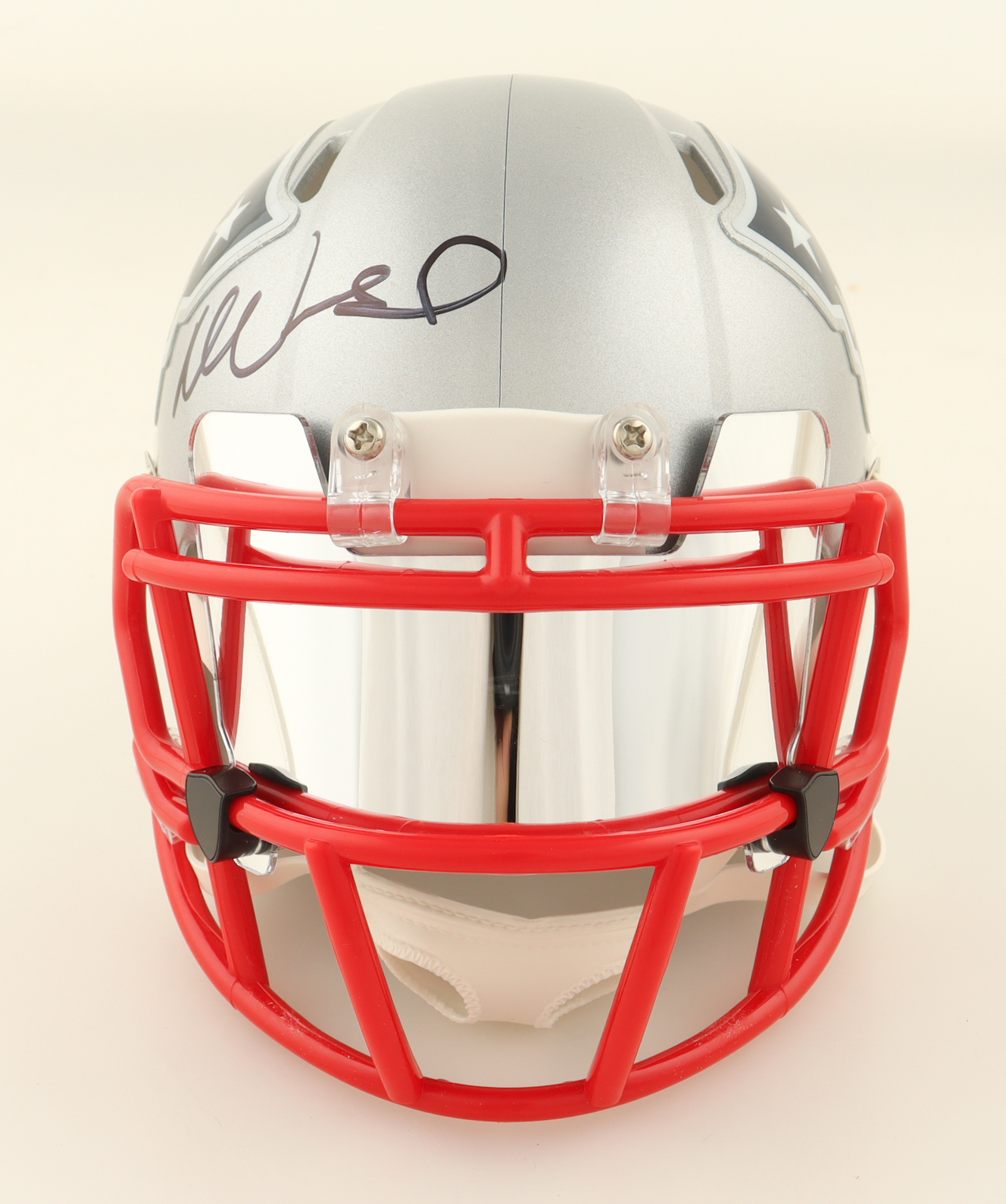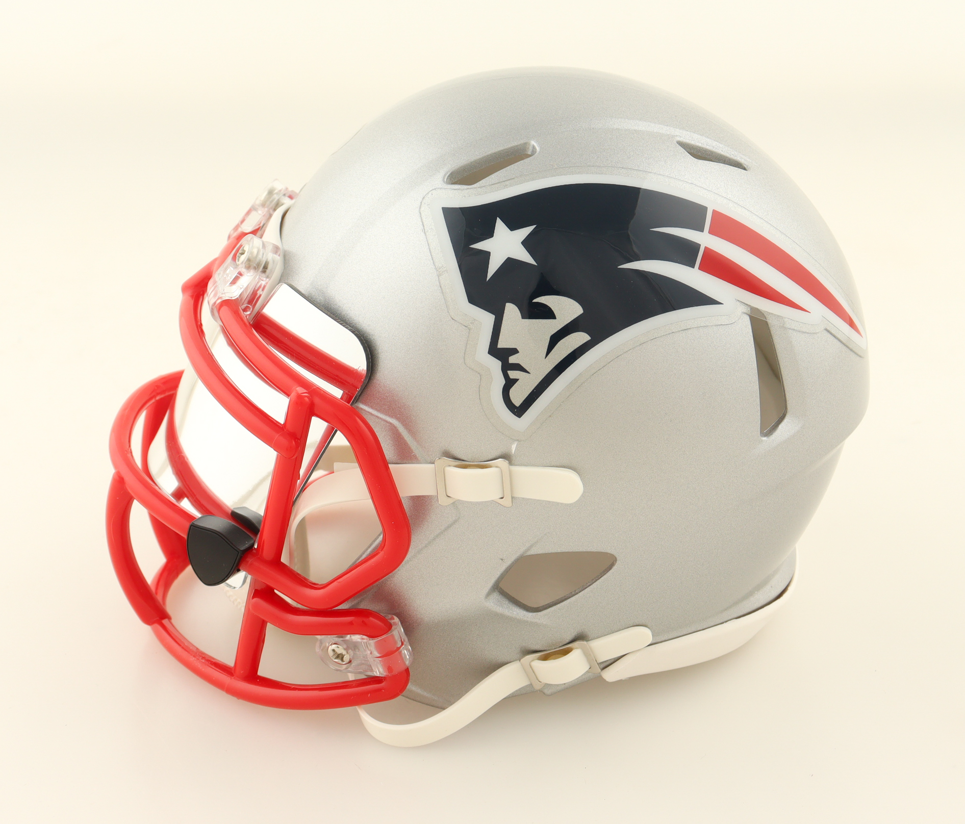 Riddell New England Patriots speed mini helmet with custom visor. Hand-signed by Mike Vrabel.