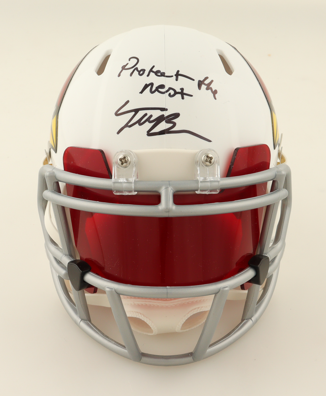 Trey McBride Signed Cardinals Speed Mini Helmet with Custom Visor Inscribed "Protect the Nest" (Beckett)