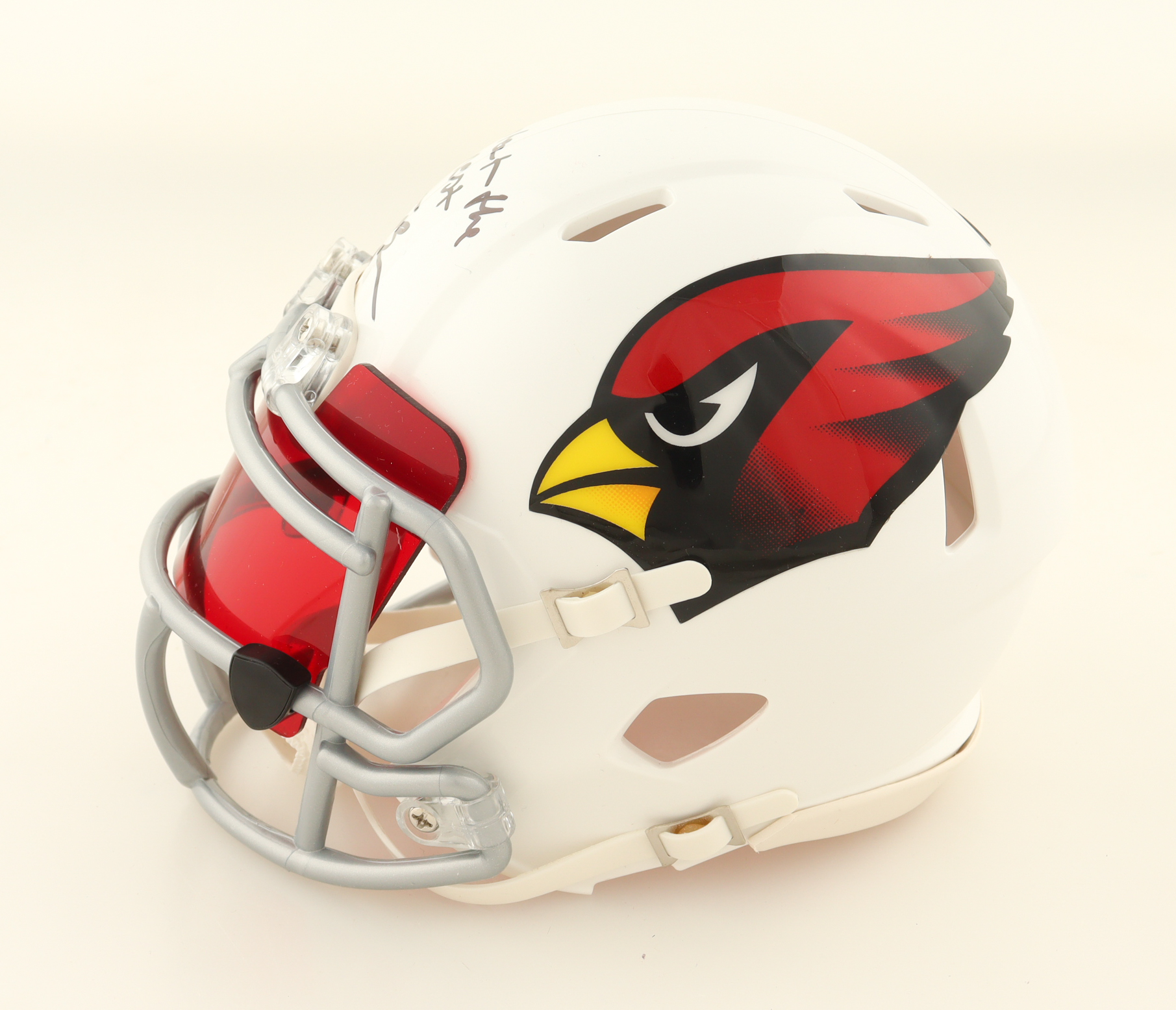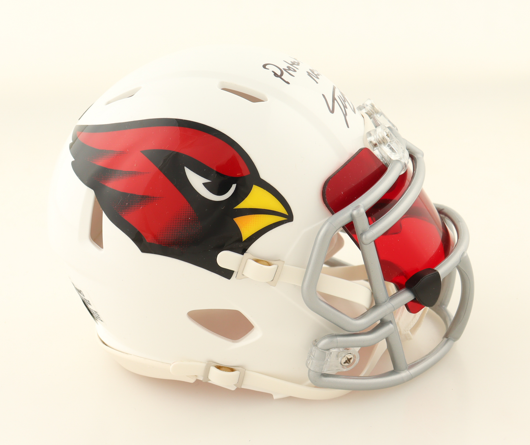 Riddell Arizona Cardinals Speed Mini Helmet with custom visor. Hand-signed and inscribed by Trey McBride.