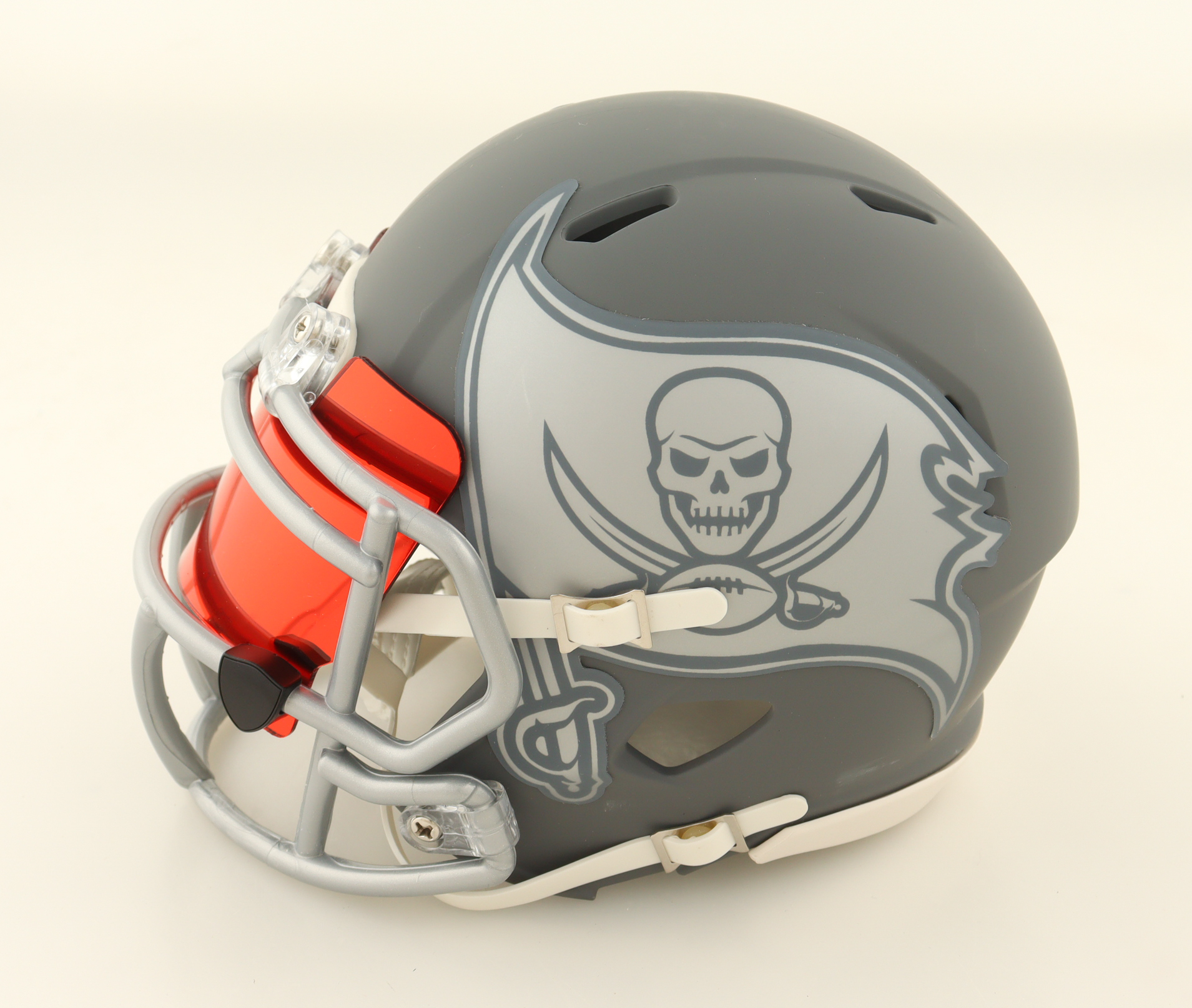 Riddell Tampa Bay Buccaneers Slate Alternate Speed Mini Helmet with custom visor. Hand-signed by John Lynch (HOF).