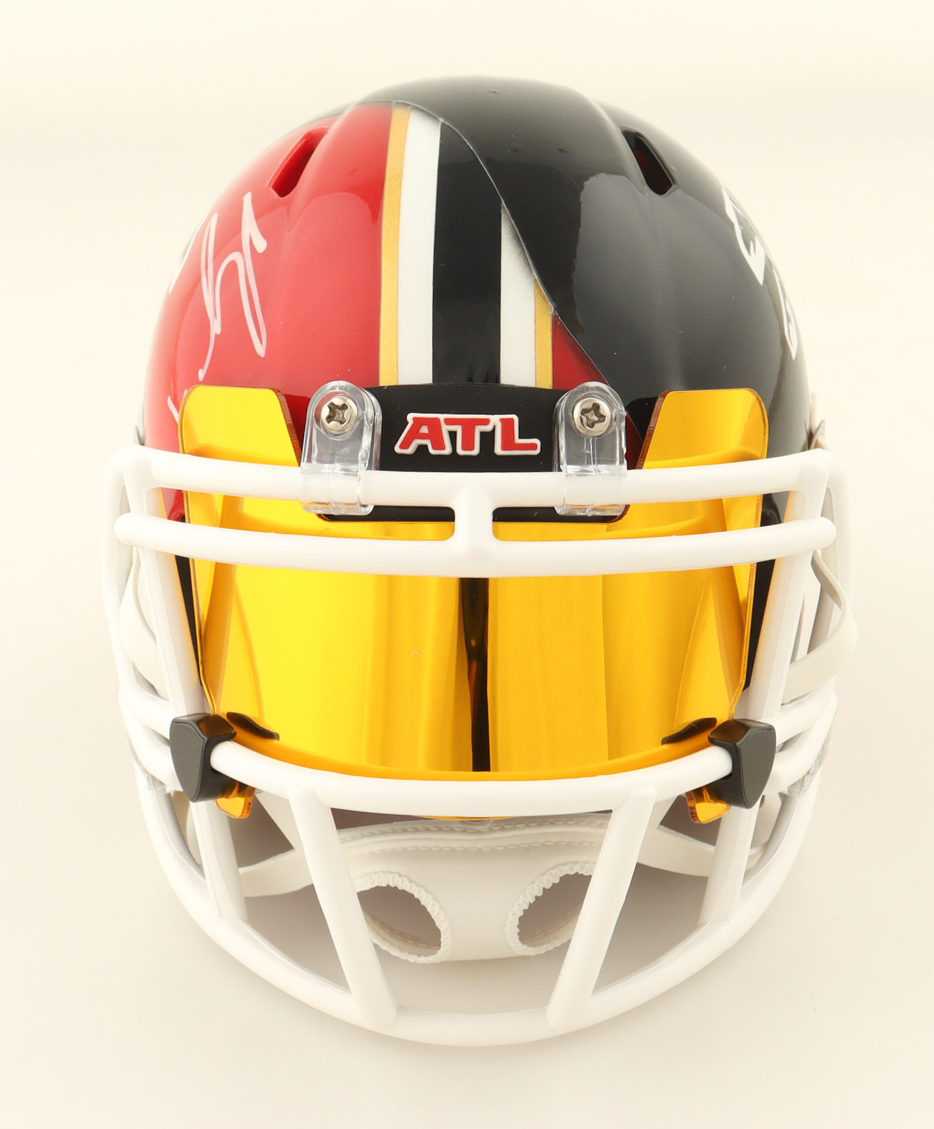Bijan Robinson & Drake London Signed Falcons Custom Speed Mini Helmet with Custom Visor (Beckett)