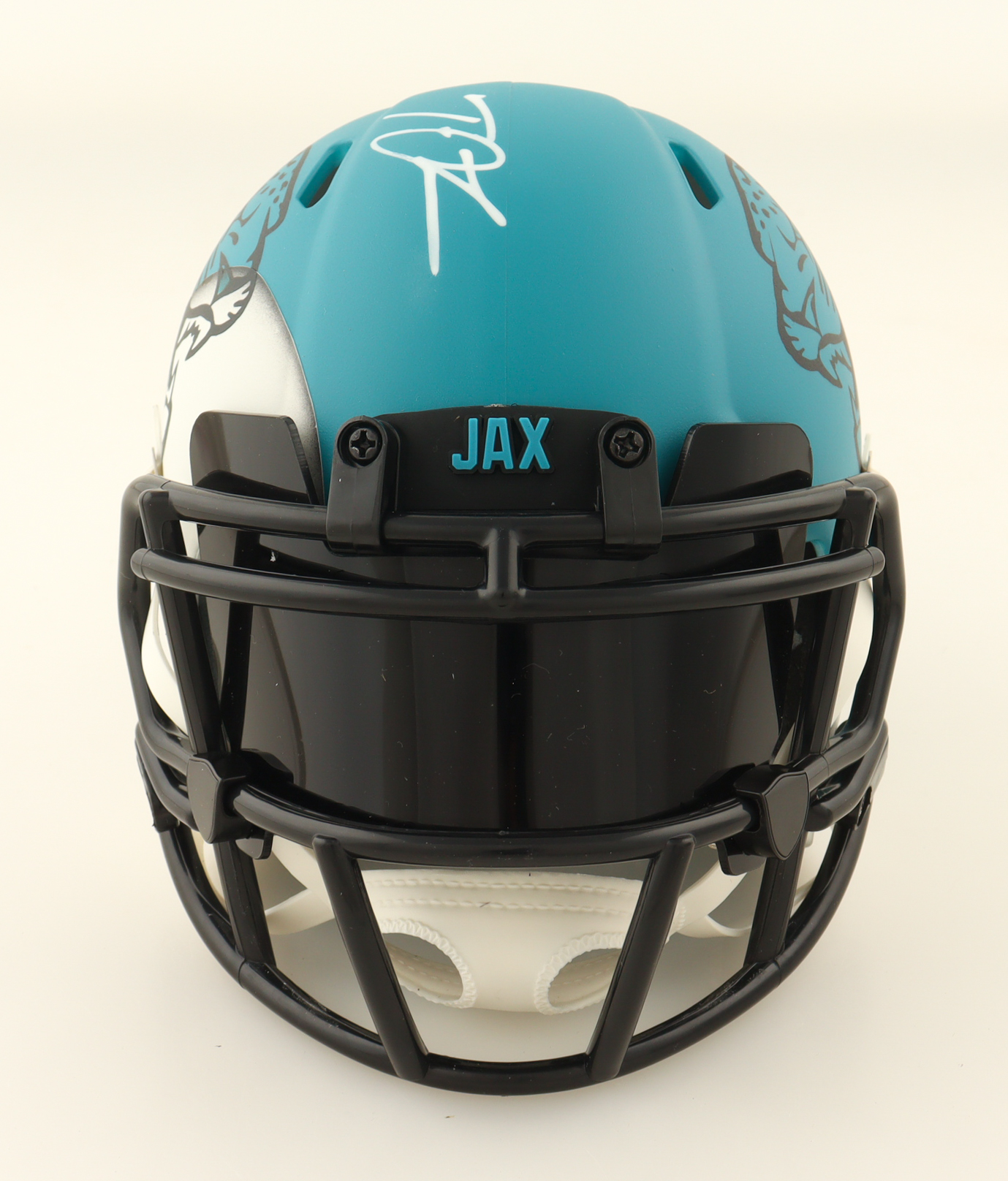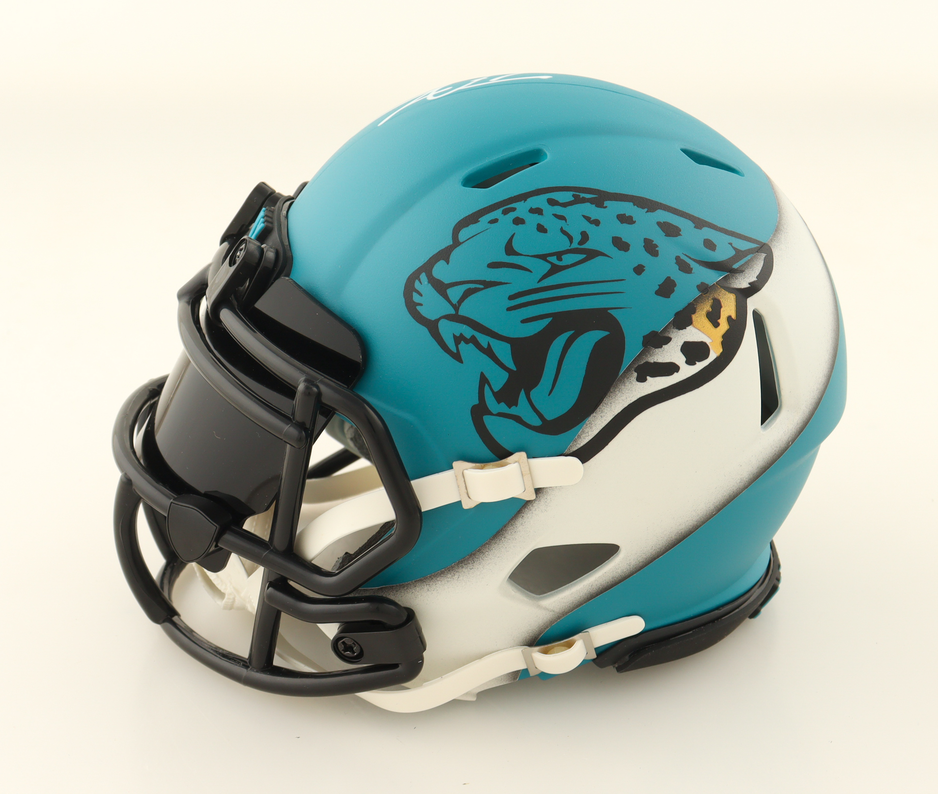 Riddell Jacksonville Jaguars Custom Speed Mini Helmet with custom visor. Hand-signed by Trevor Lawrence.