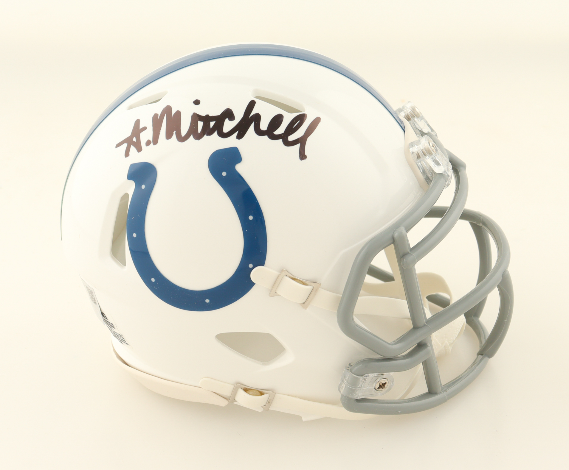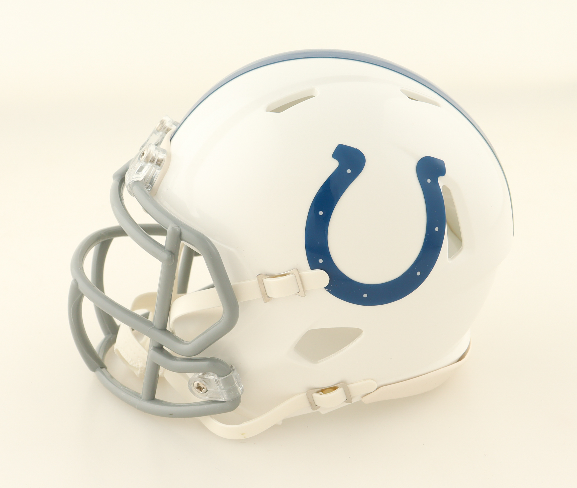 Riddell Indianapolis Colts Speed Mini Helmet. Hand-signed by Adonai Mitchell.