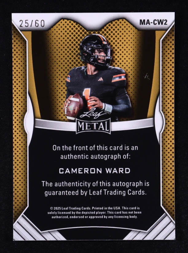 Cameron Ward 2025 Leaf Metal Autographs Kaleidoscope Orange #MACW2 RC #25/60