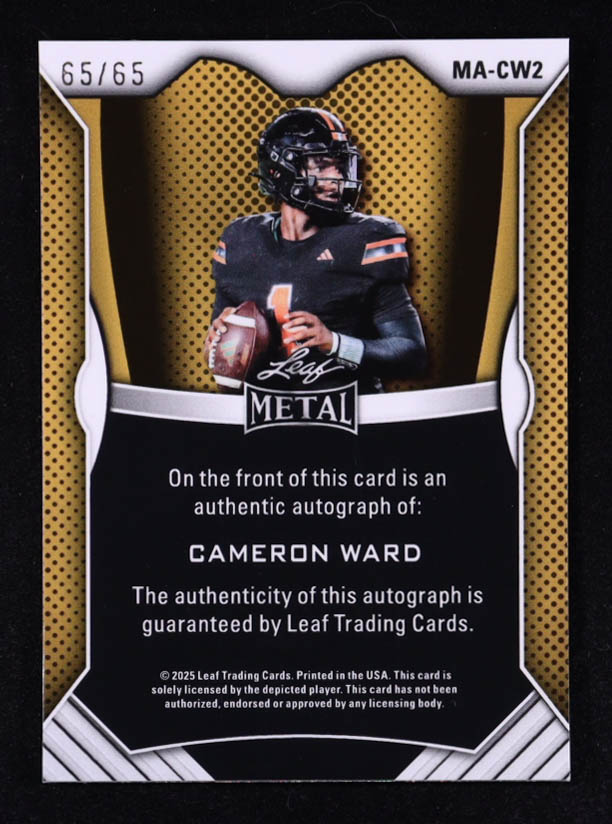 Cameron Ward 2025 Leaf Metal Autographs Diagonal Shimmer White #MACW2 RC #65/65