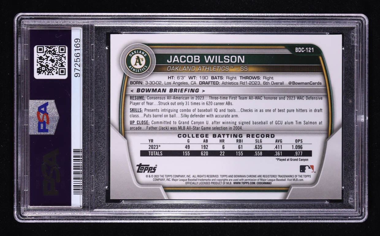 Jacob Wilson 2023 Bowman Chrome Draft Sapphire #BDC121 RC (PSA 9)