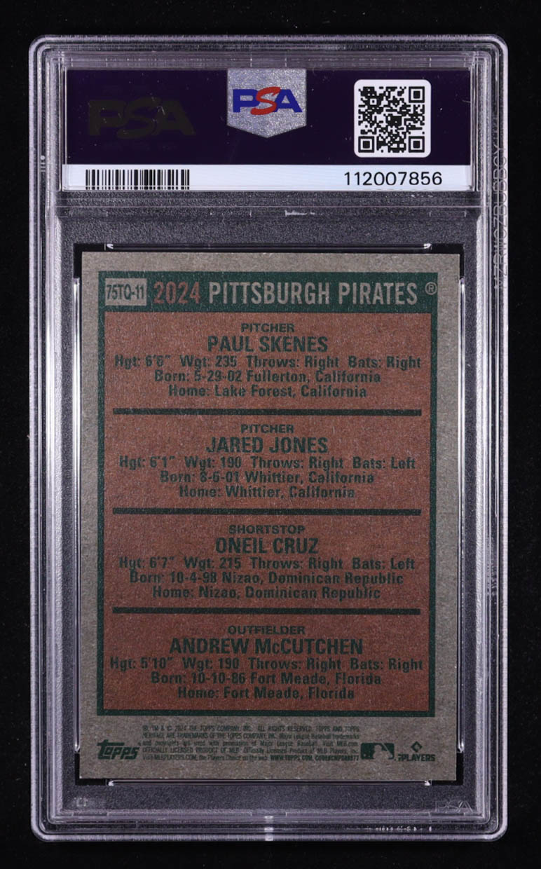Andrew McCutchen / Oneil Cruz / Jared Jones / Paul Skenes RC 2024 Topps Heritage '75 Topps Team Quads #75TQ11 (PSA 8)