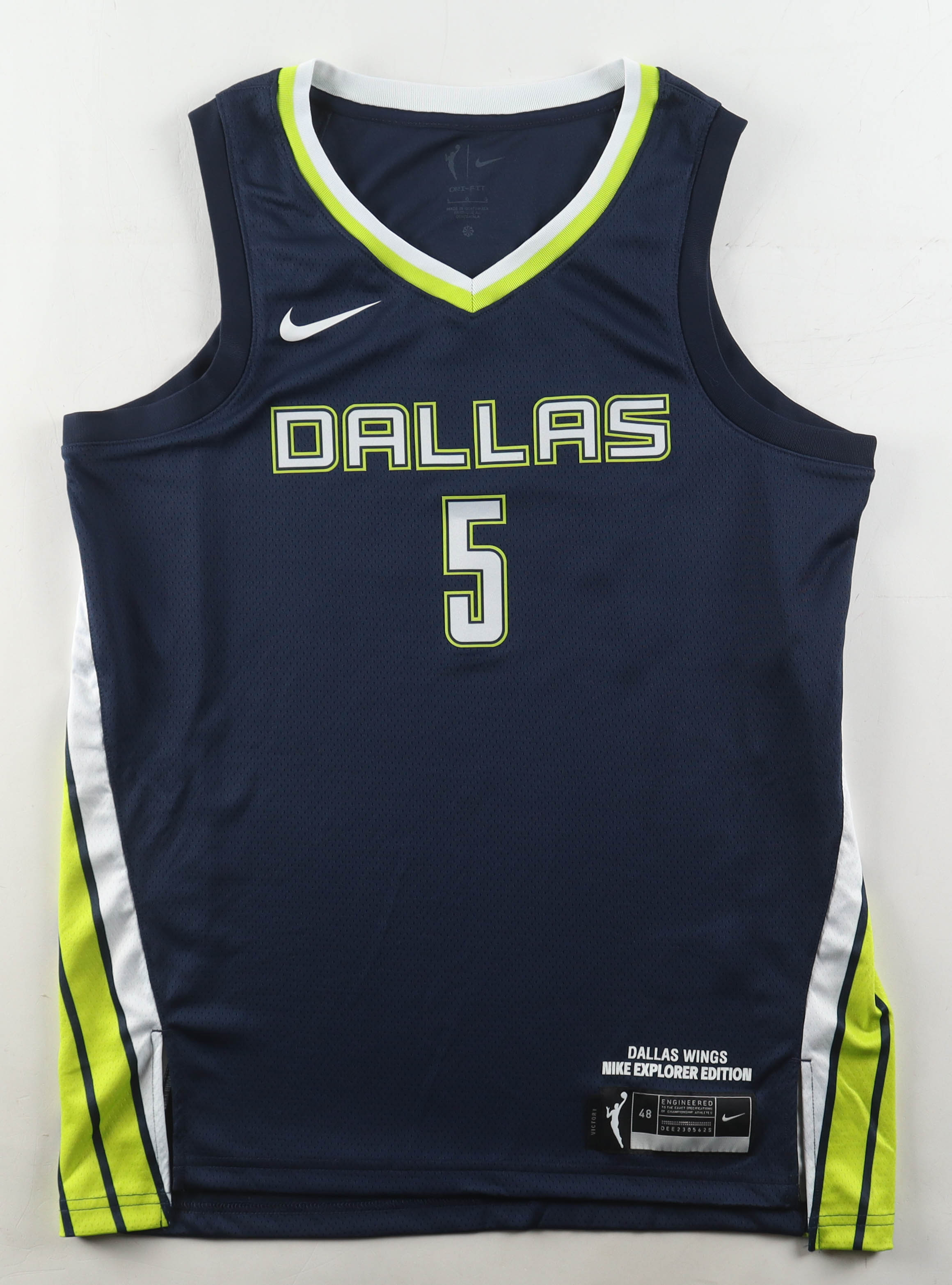 Nike authentic jersey with everything pressed on, size 48. Hand-signed by Paige Bueckers (Dallas Wings).