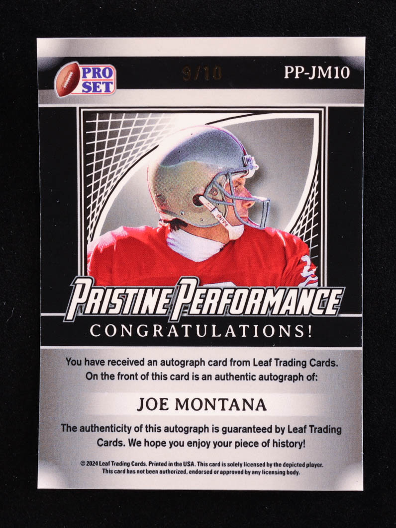 Joe Montana 2024 Leaf Metal Legacy Collection "Pristine Performance" #PP-JM10 Autograph Purple Prismatic SP Variation #/10