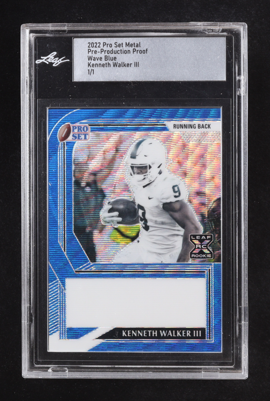 Kenneth Walker III 2022 Pro Set Metal Pre-Production Proof Wave Blue #NNO #1/1 RC (Leaf)