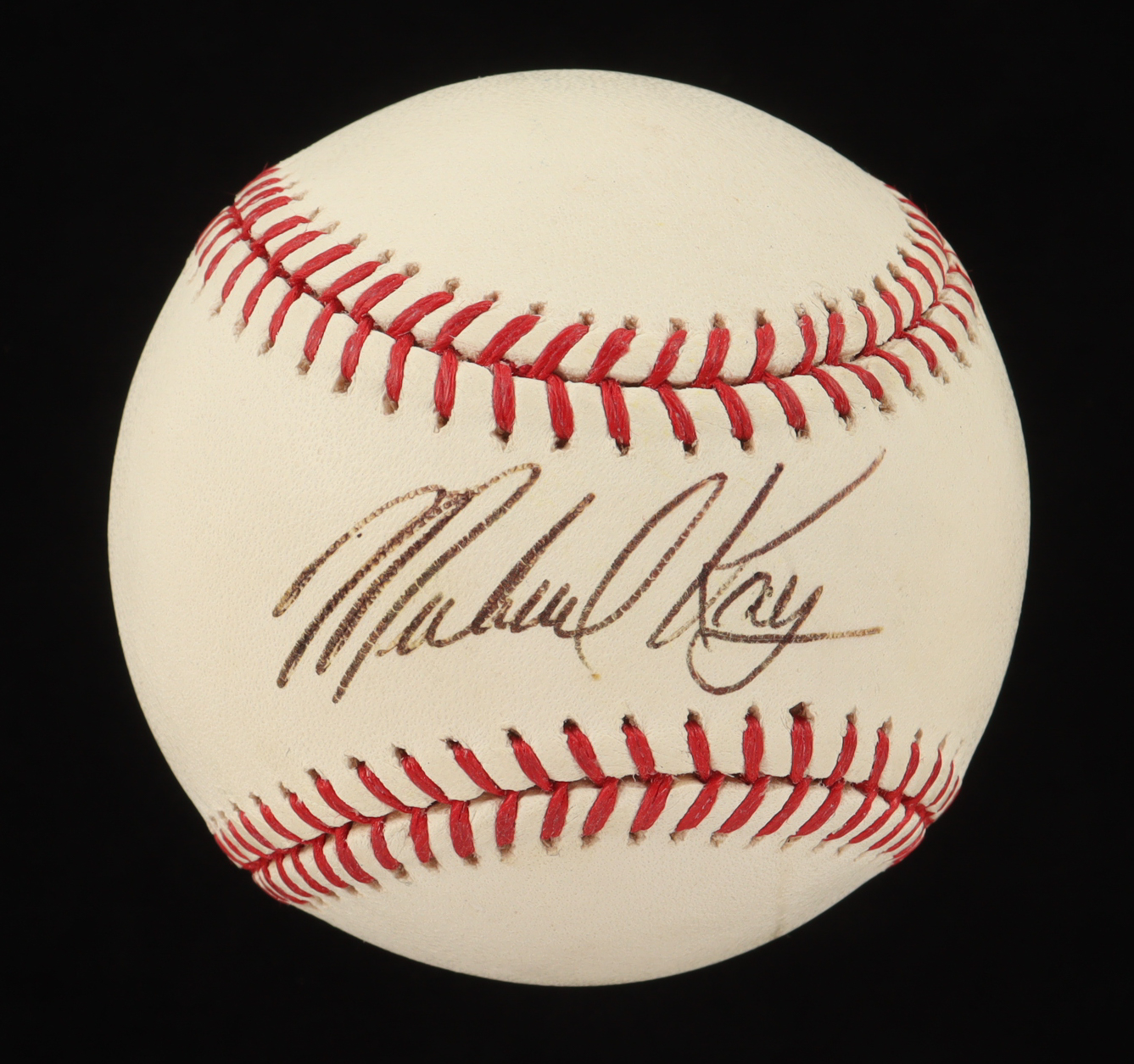 Rawlings Official Major League baseball. Hand-signed by Michael Kay (New York Yankee Broadcaster). Please note, the baseball is naturally toned.