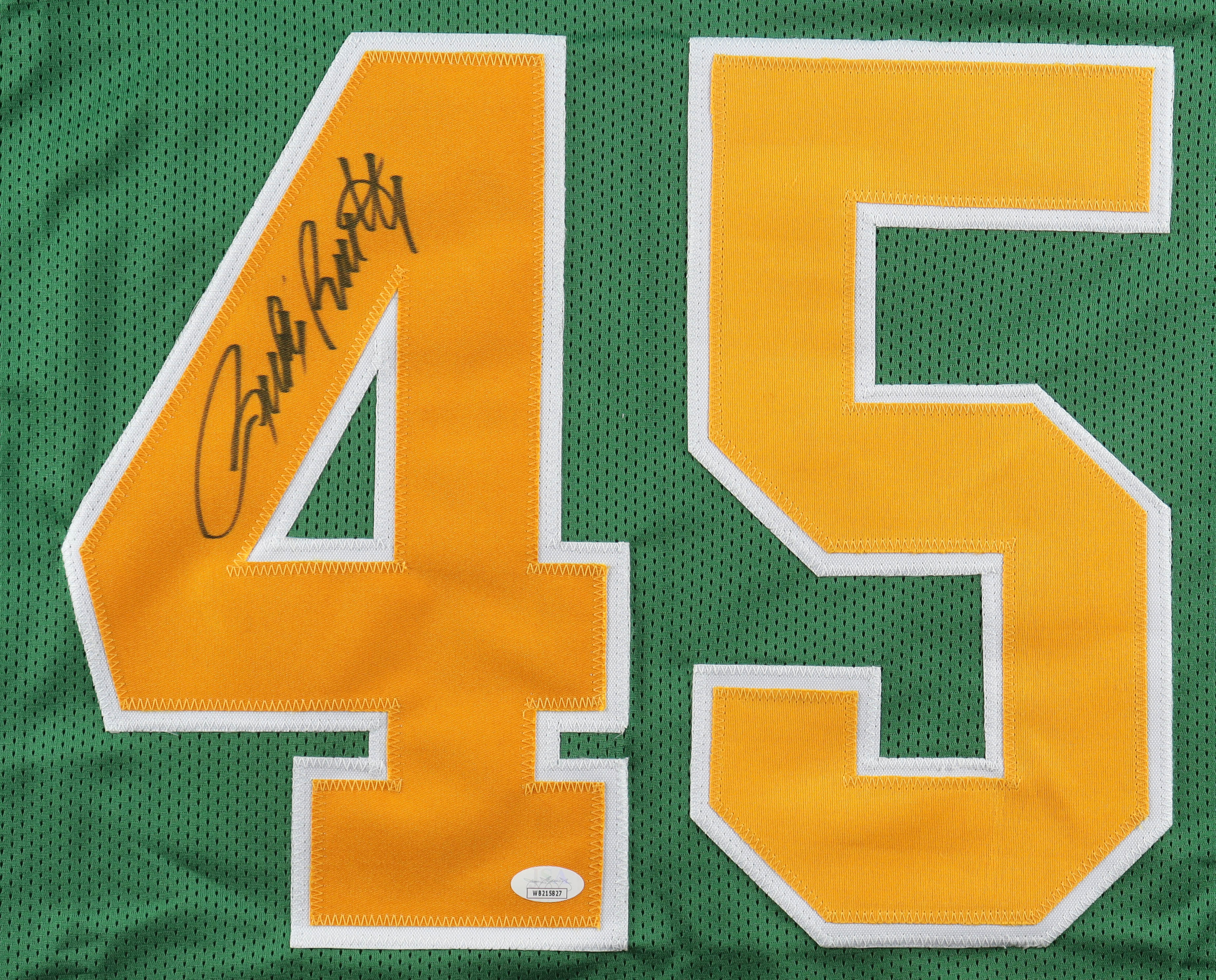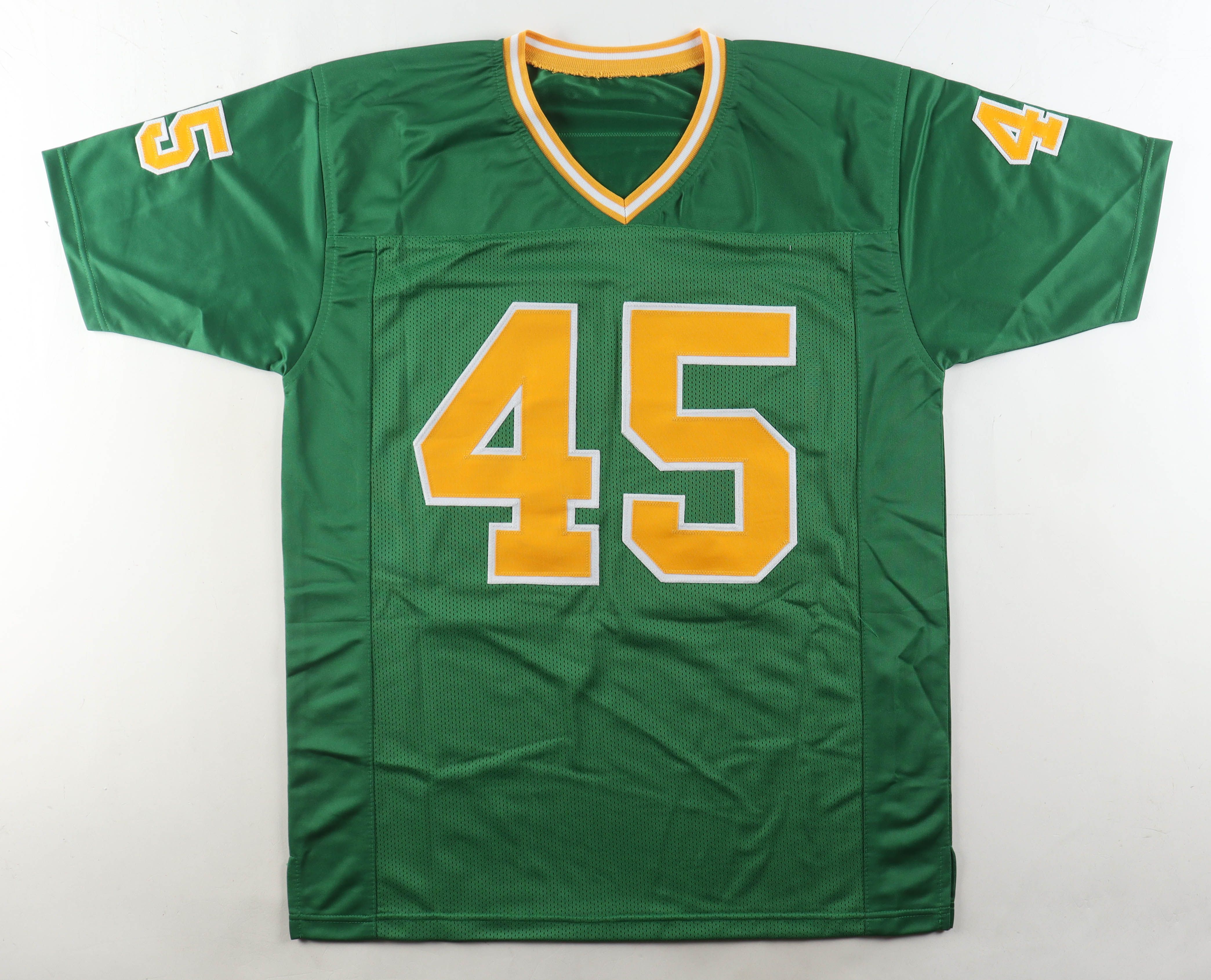 Custom jersey with everything sewn on, size XL. Hand-signed by Rudy Ruettiger.