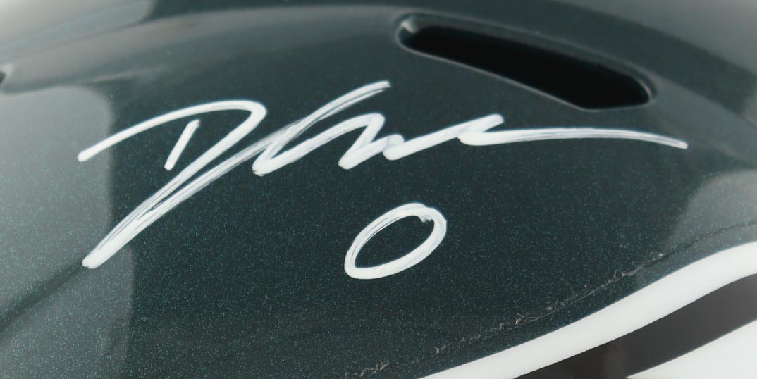 Riddell Philadelphia Eagles Full-Size Speed Replica Helmet. Hand-signed by D'Andre Swift.