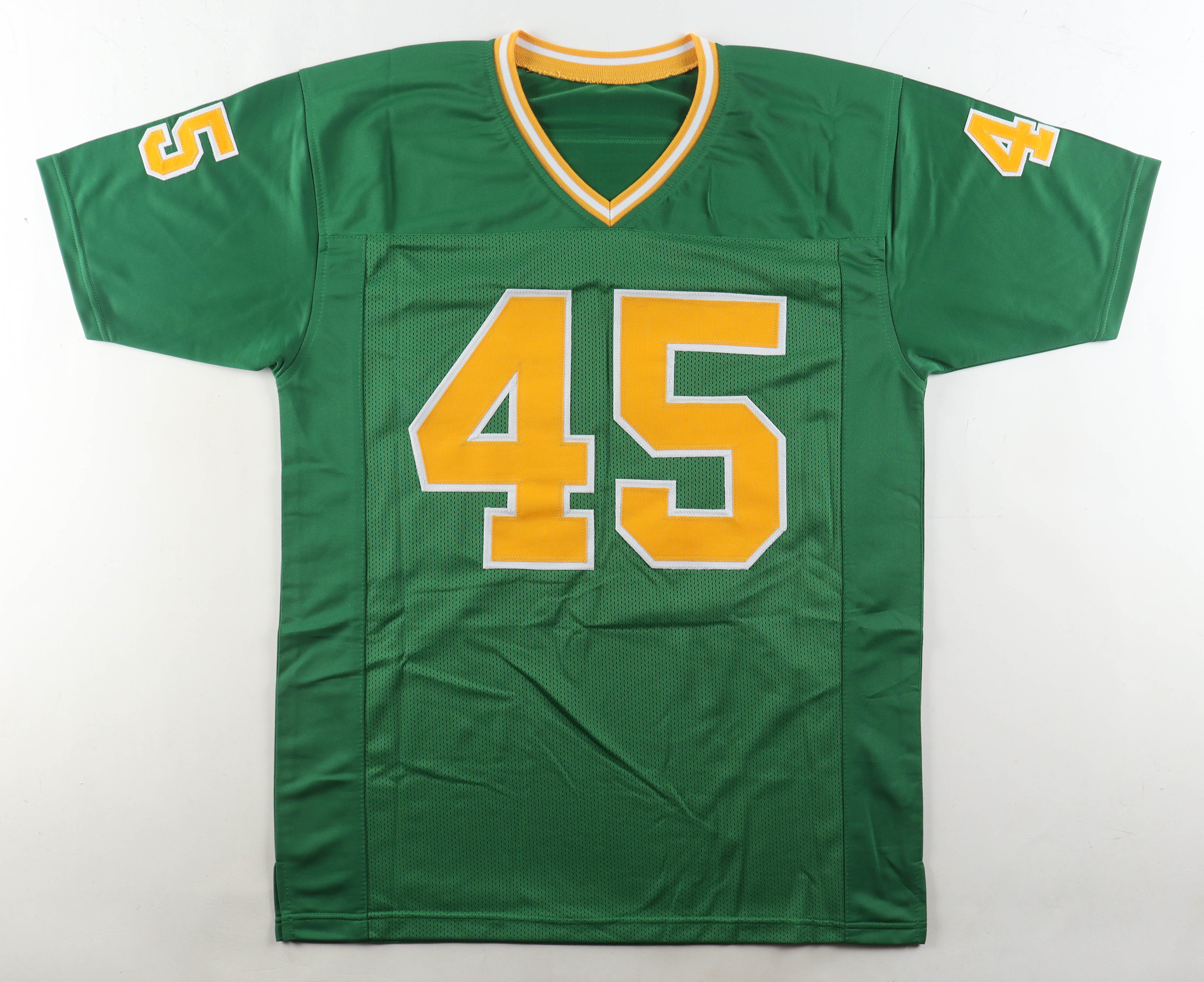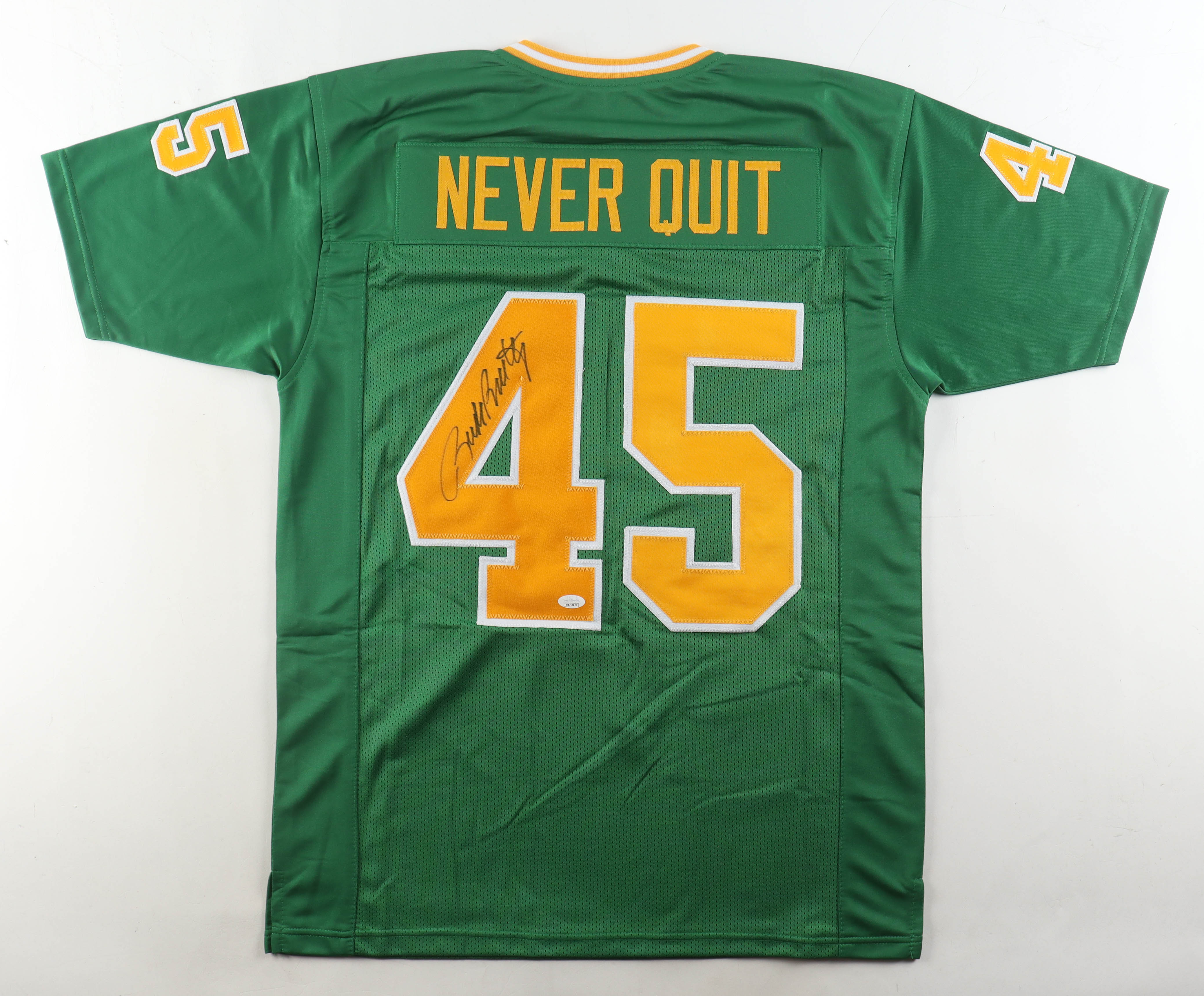 Custom jersey with everything sewn on, size XL. Hand-signed by Rudy Ruettiger.