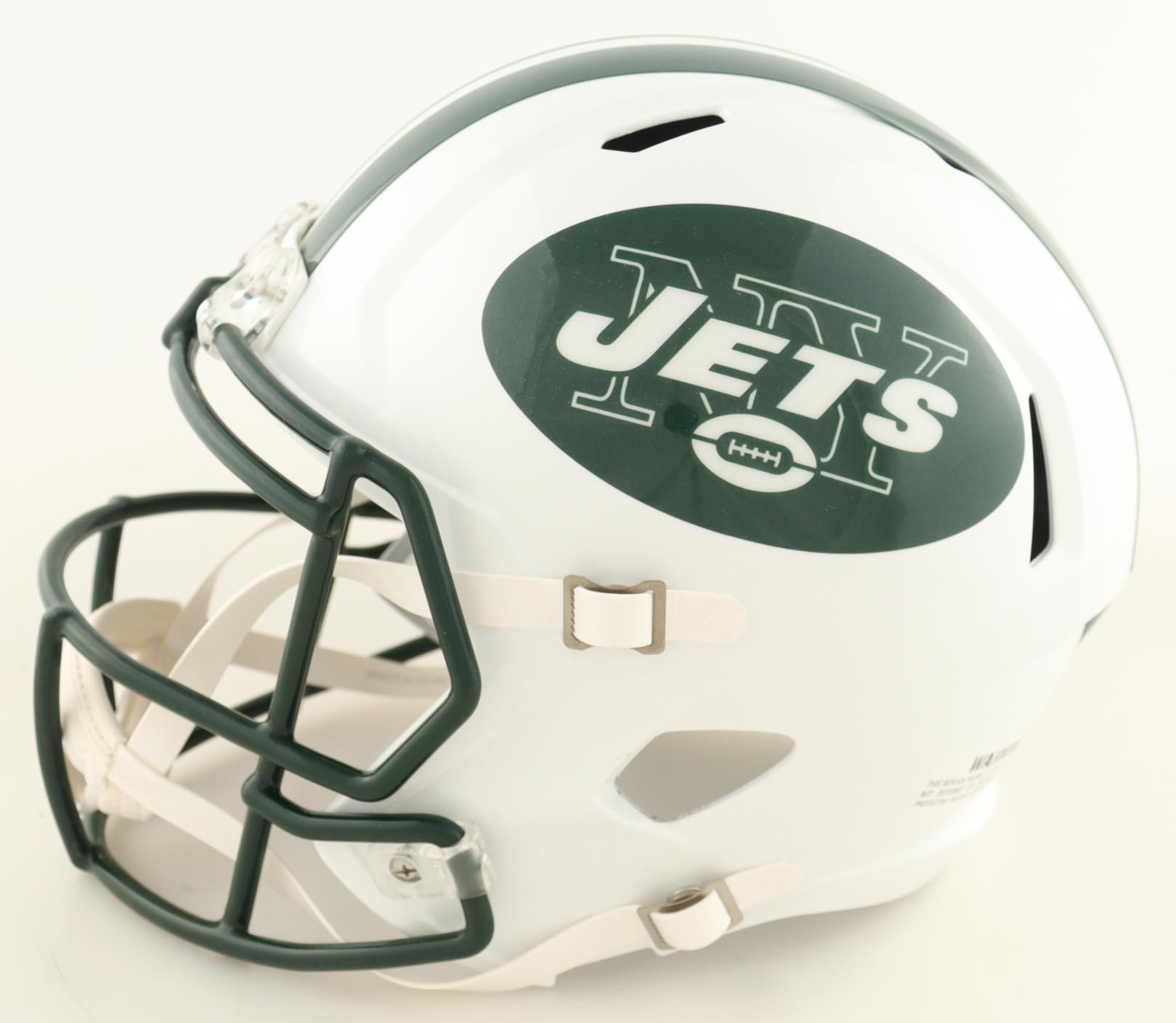 Riddell New York Jets full-size speed replica helmet has been hand-signed and inscribed by Kevin Mawae (HOF).